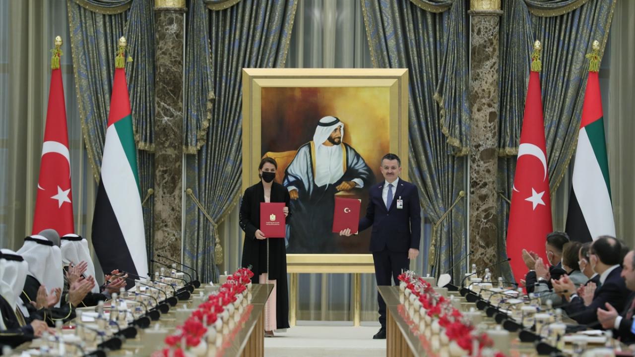 Türkiye Cumhuriyeti Hükümeti ile BAE Hükümeti Arasında Tarımsal İşbirliği Üzerine Mutabakat Zaptı`nı Tarım ve Orman Bakanı Bekir Pakdemirli ile BAE İklim Değişikliği ve Çevre Bakanı Mariam Almheiri imzaladı.