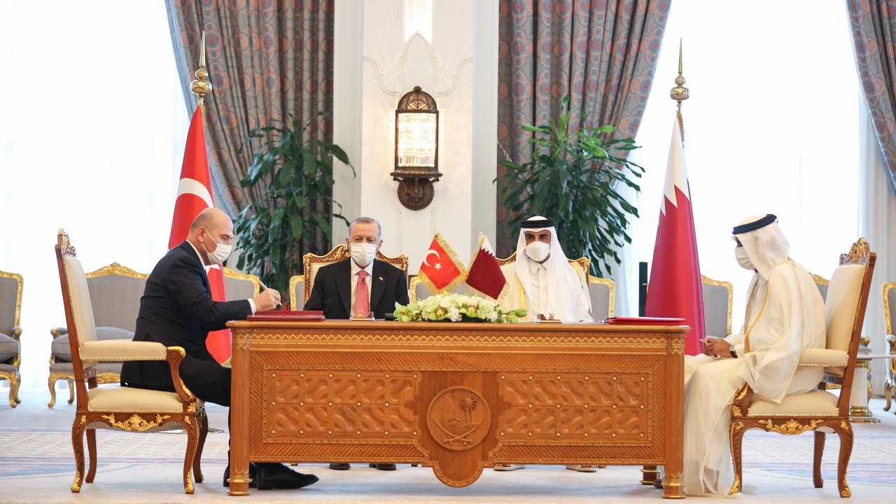 Türkiye Cumhuriyeti İçişleri Bakanlığı Afet ve Acil Durum Yönetimi Başkanlığı ile Katar Devleti İçişleri Bakanlığı Sivil Savunma Genel Müdürlüğü Arasında Afet ve Acil Durum Yönetimi Alanında Mutabakat Zaptı ve Türkiye Cumhuriyeti Hükümeti ile Katar Devleti Hükümeti Arasında Büyük Çaplı Organizasyonların Yerine Getirilmesinde İşbirliği Konulu Niyet Mektubunun Uygulanmasına İlişkin Protokolü, İçişleri Bakanı Süleyman Soylu ile Katar Başbakanı ve İçişleri Bakanı Şeyh Khalid bin Khalifa bin Abdulaziz Al Thani imzaladı.