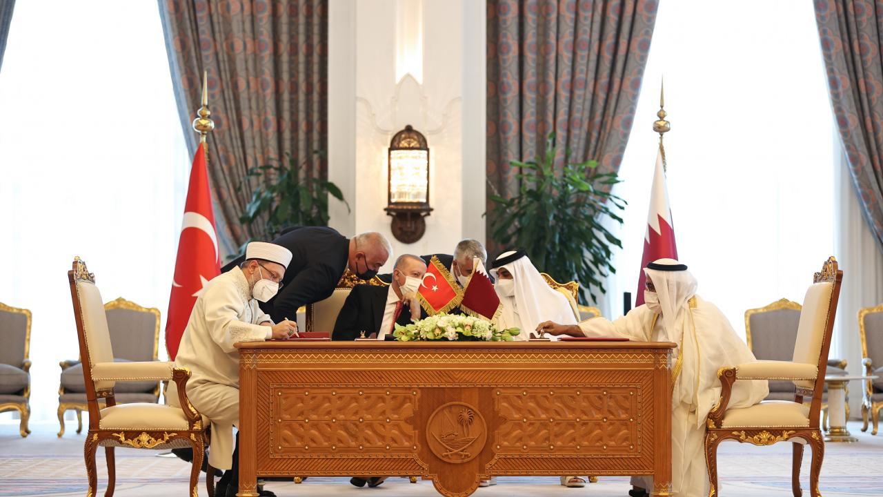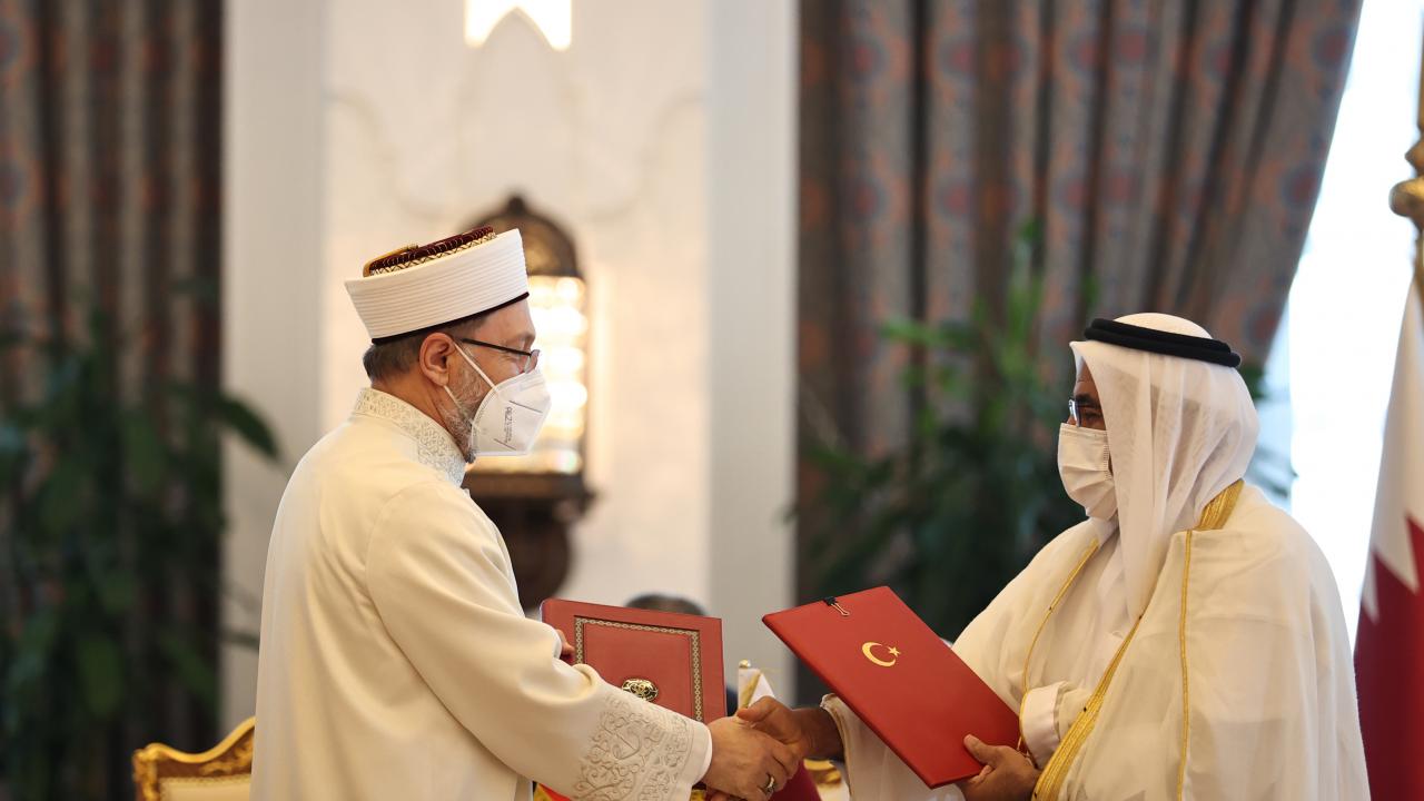 Türkiye Cumhuriyeti Diyanet İşleri Başkanlığı ile Katar Devleti Vakıflar ve İslam İşleri Bakanlığı Arasında Vakıflar ve İslami İşler Alanında İşbirliği Mutabakat Zaptı`na Diyanet İşleri Başkanı Ali Erbaş ve Vakıflar ve İslam İşleri Bakanı Ghanem bin Shaheen Al Ghanim imza attı.