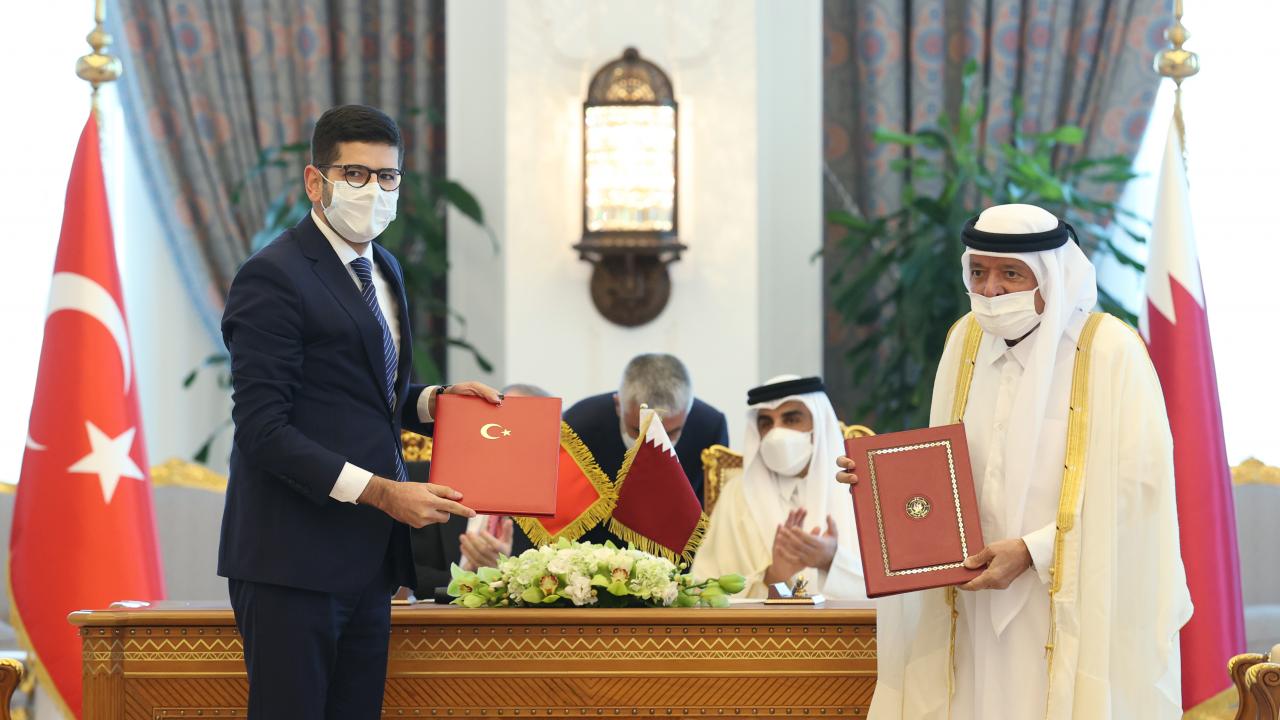 Cumhurbaşkanlığı Yatırım Ofisi ile Katar İş İnsanları Derneği Arasında Mutabakat Zaptı`nı Cumhurbaşkanlığı Yatırım Ofisi Başkanı Ahmet Burak Dağlıoğlu ile Katar İş İnsanları Derneği Başkanı Şeyh Faisal bin Qassim Al Thani imzaladı.