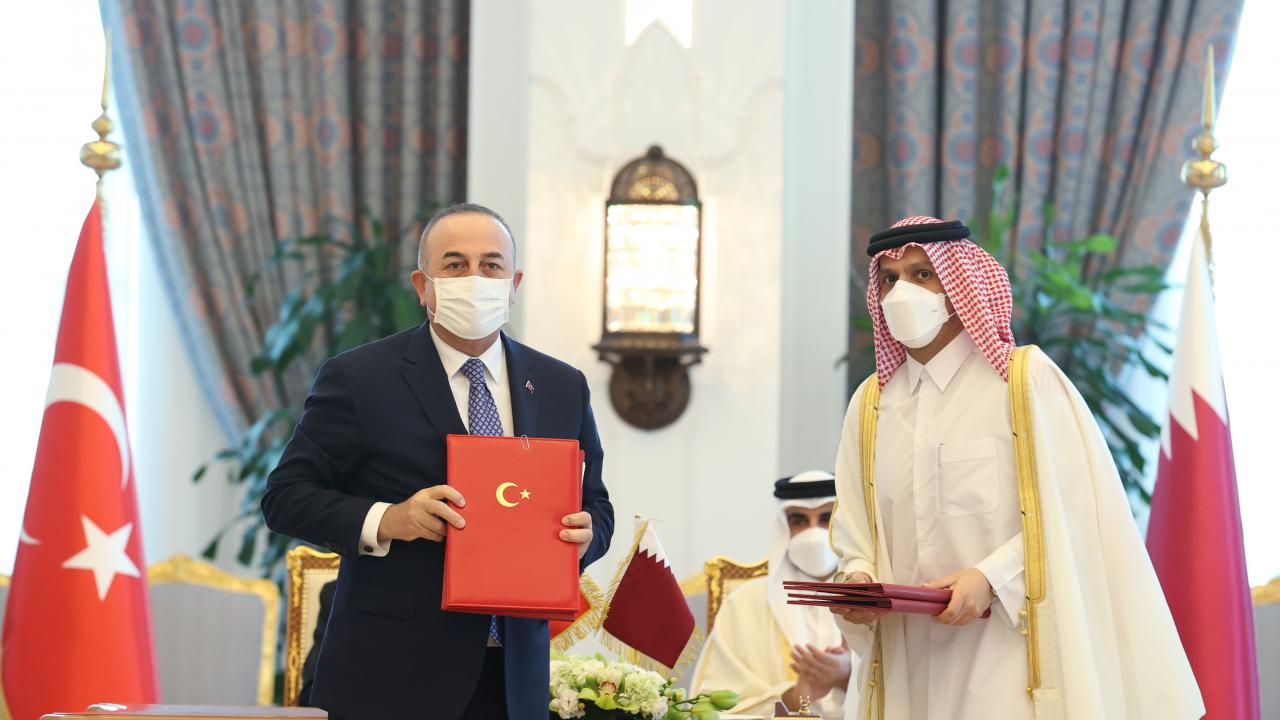 Antalya Diplomasi Forumu ile Doha Forum Arasında Kurumsal İşbirliği Tesis Edilmesine Yönelik Niyet Mektubu`na Protokol Alanında İşbirliği Mutabakat Zaptı`na ve Yüksek Stratejik Komite Yedinci Toplantısı Ortak Bildirisi`ne Dışişleri Bakanı Mevlüt Çavuşoğlu ve Katar Başbakan Yardımcısı ve Dışişleri Bakanı Muhammed bin Abdurrahman Al Thani imza attı.