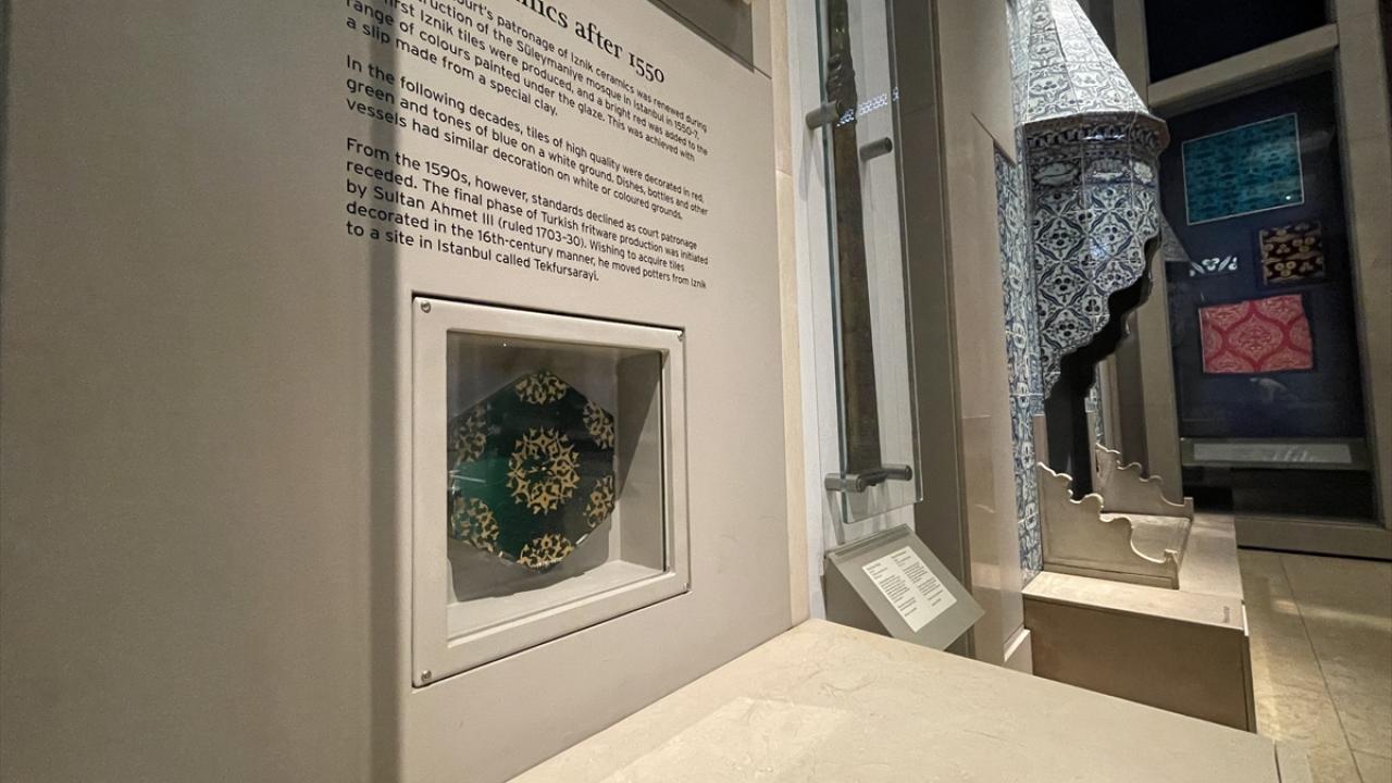 Osmanlı sanatı ve kültürüne ilişkin eserlerin sergilendiği "İslam Dünyası" salonunda, İstanbul`daki Mimar Sinan eseri Çinili Hamamı`nın çinileri, koleksiyoner John Henderson`un ölümünün ardından bağışladığı çini eşyalar ile müzenin ilk yöneticilerinden Augustus Wollaston Franks`ın bağışladığı ya da satın aldığı eserler bulunuyor.