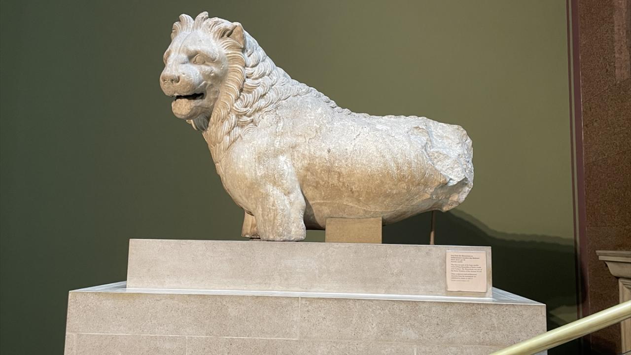 British Museum`un ziyaretçilerini, ana giriş kapısının hemen içinde 2 aslan heykeli karşılıyor. Halikarnas Mozolesi kazısından çıkarılan iki aslanı geçip müzenin merkezindeki 2. Elizabeth Büyük Salonu`na ulaşan ziyaretçiler, yaklaşık 2 metreye 3 metre büyüklüğündeki Knidos Aslanı`nı görebiliyor.