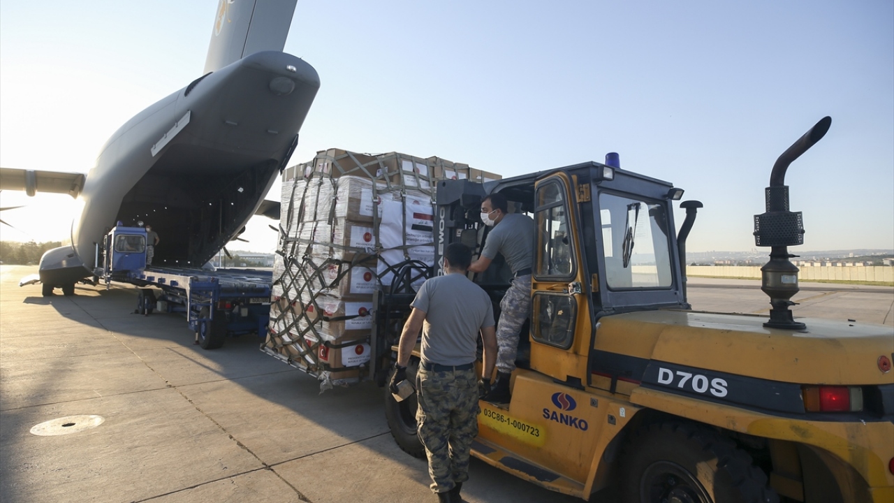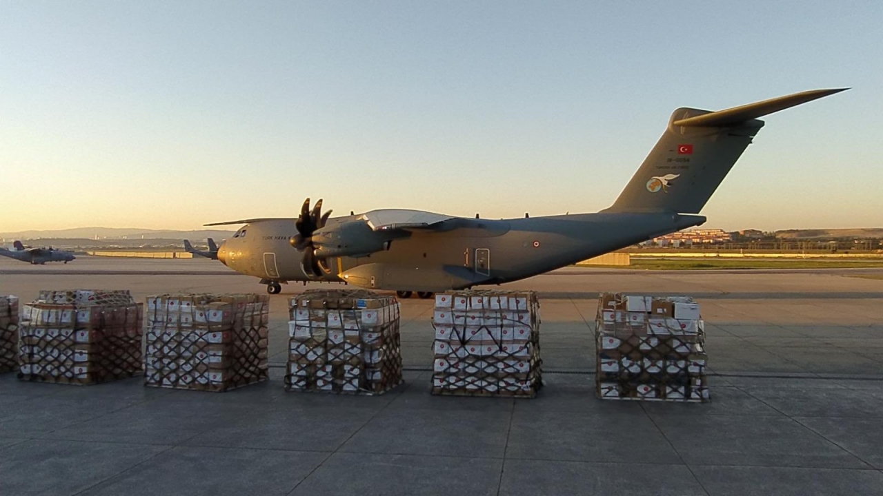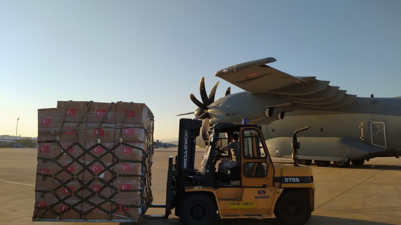 Sağlık Bakanlığınca hazırlanan malzemeler, Etimesgut Askeri Havaalanı`nda Türk Silahlı Kuvvetlerine (TSK) ait A400M tipi dev nakliye uçağına yüklendi.