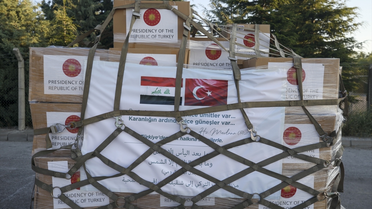 Irak`a hareket eden uçaktaki yardım malzemesi kolilerinin üzerinde Cumhurbaşkanlığı forsunun yanı sıra Mevlana`nın, "Ümitsizliğin ardında nice ümitler var. Karanlığın ardında nice güneşler var" ve "Türkiye`den Irak Cumhuriyeti halkına sevgilerle" sözlerine Türkçe ve Arapça yer verildi.