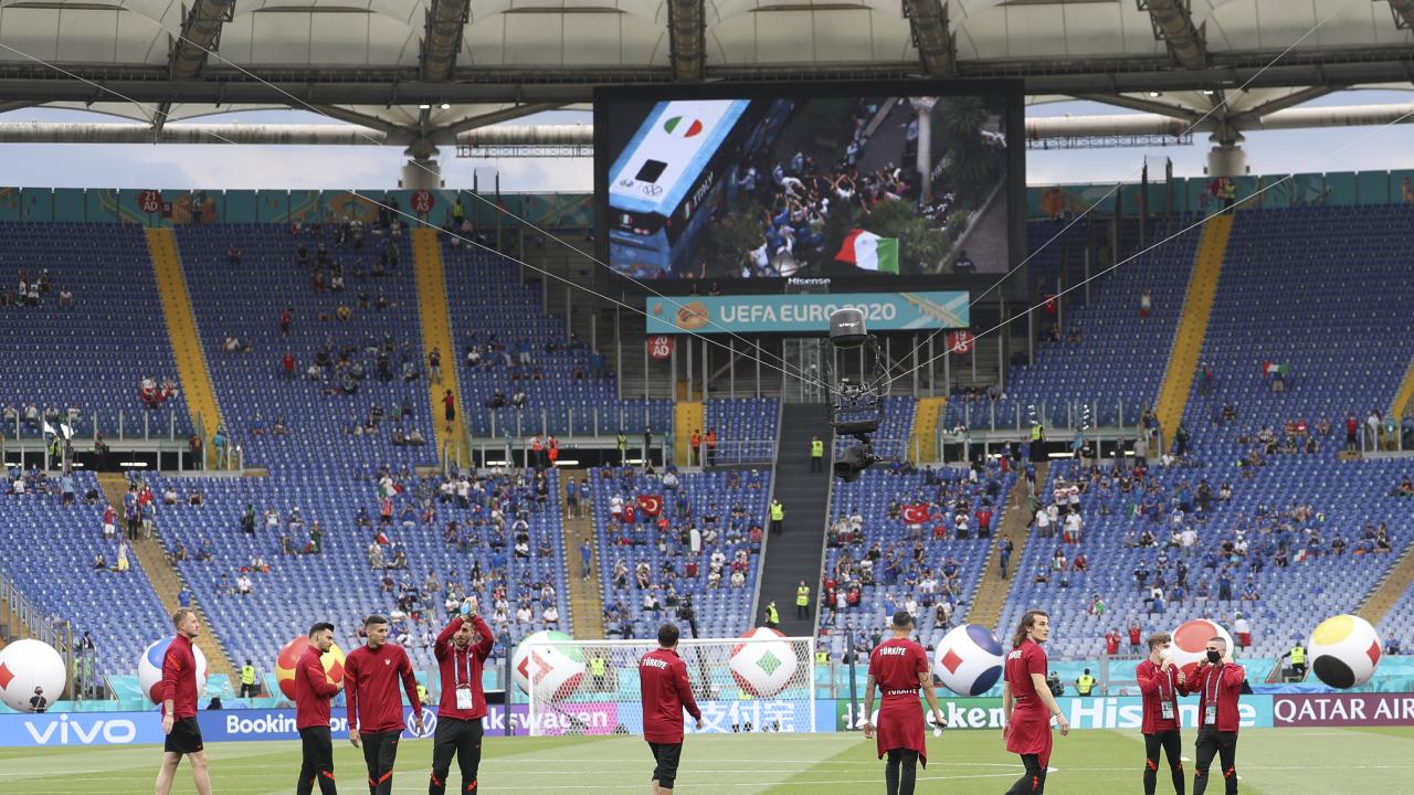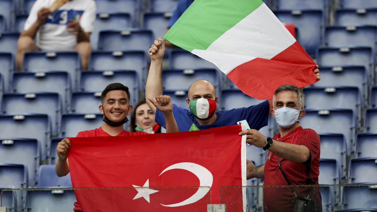2020 Avrupa Futbol Şampiyonası (EURO 2020) açılış karşılaşmasında A Milli Futbol Takımı, Roma Olimpiyat Stadı’nda İtalya ile karşılaşacak. Maç öncesi taraftarlar tribünlerde yerini aldı.