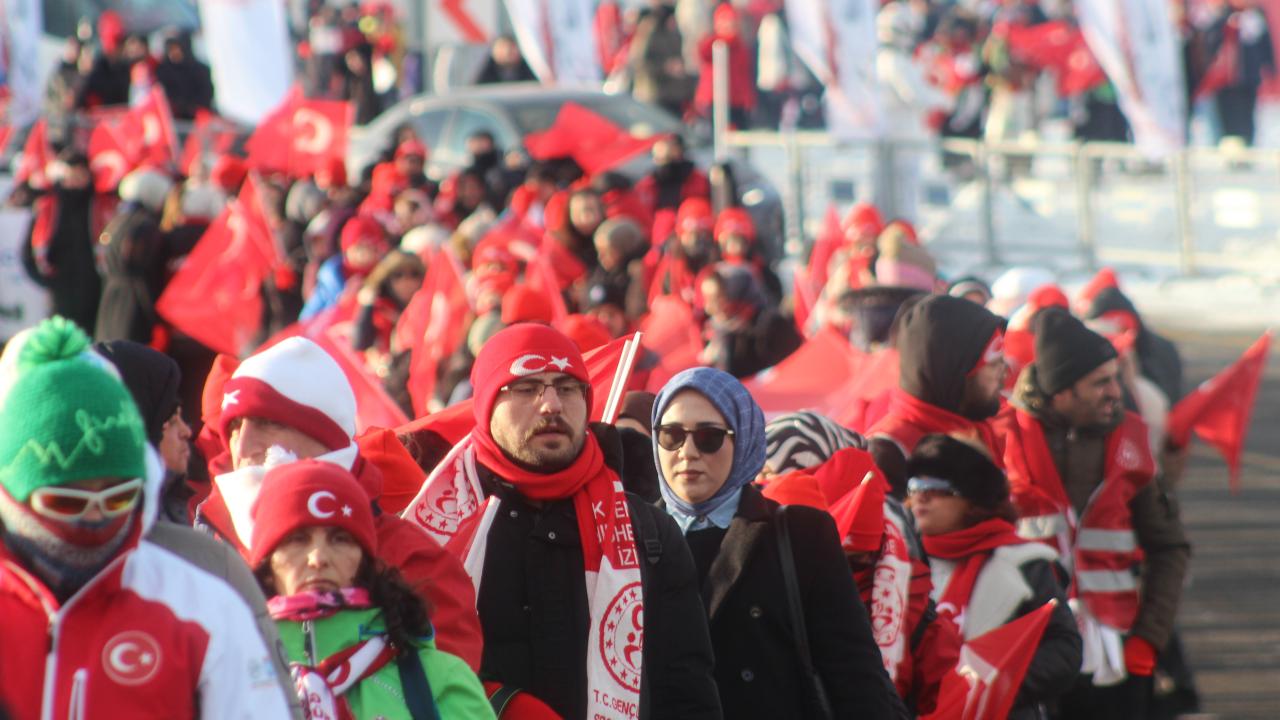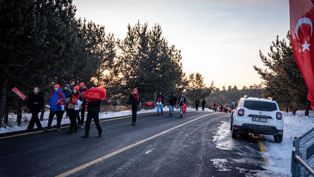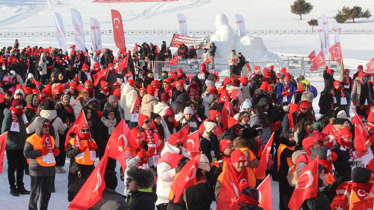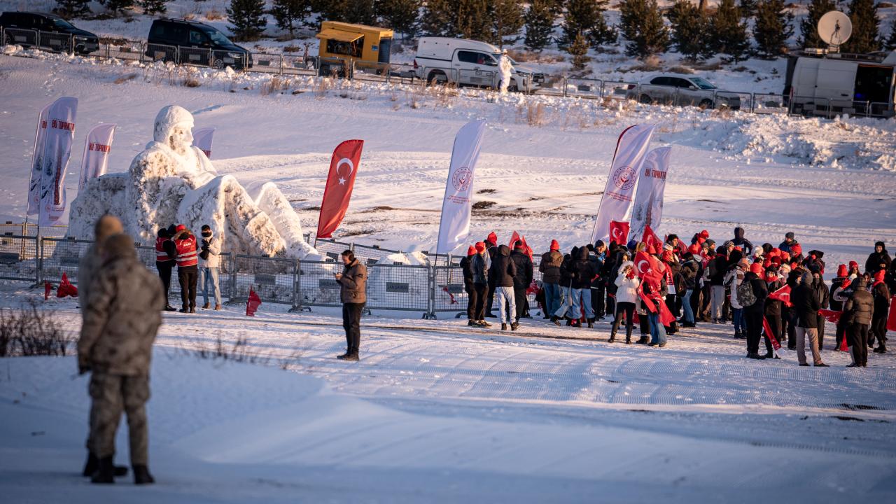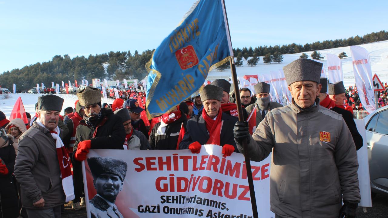 Kent merkezi ile Sarıkamış ilçesinden otobüslerle zirveye ulaşan katılımcılar, Türk bayraklarıyla yürüyerek toplanma alanına geldi. Vatandaşlar, Kızılçubuk bölgesinde şehitler anısına yapılan kardan heykellerin önünde fotoğraf çektirdi.