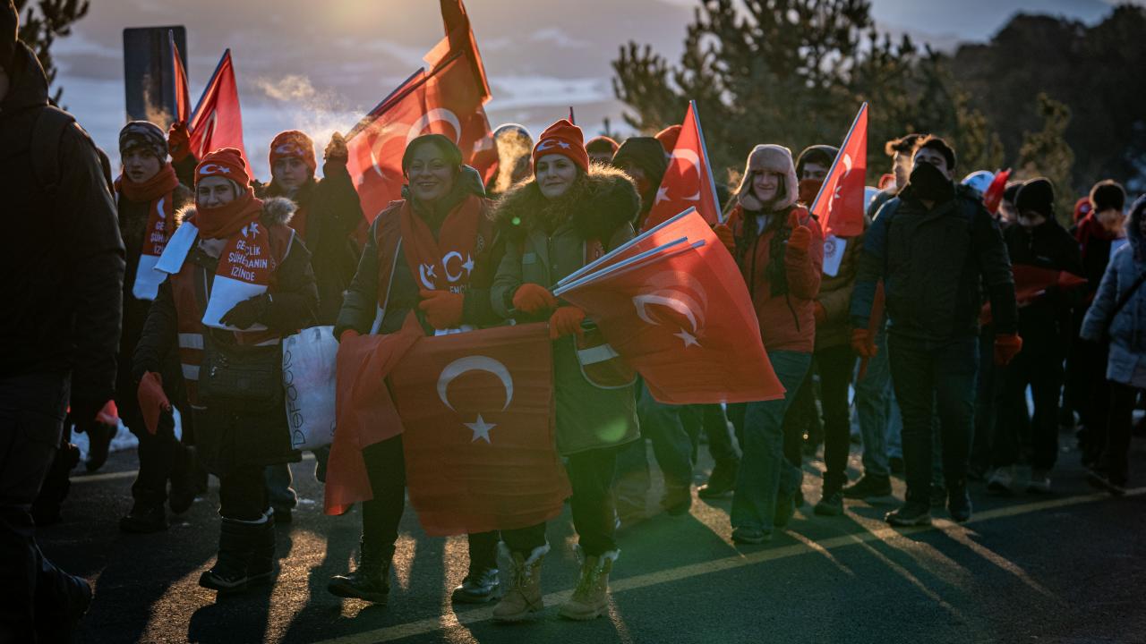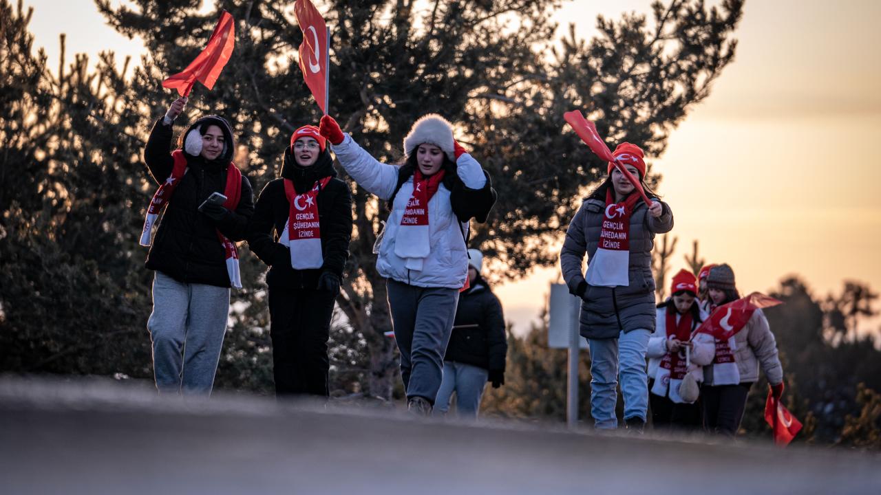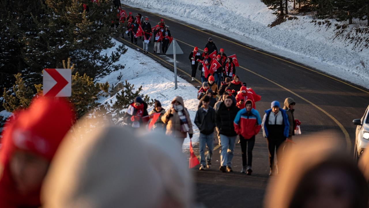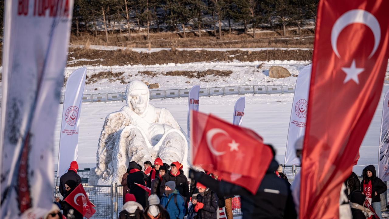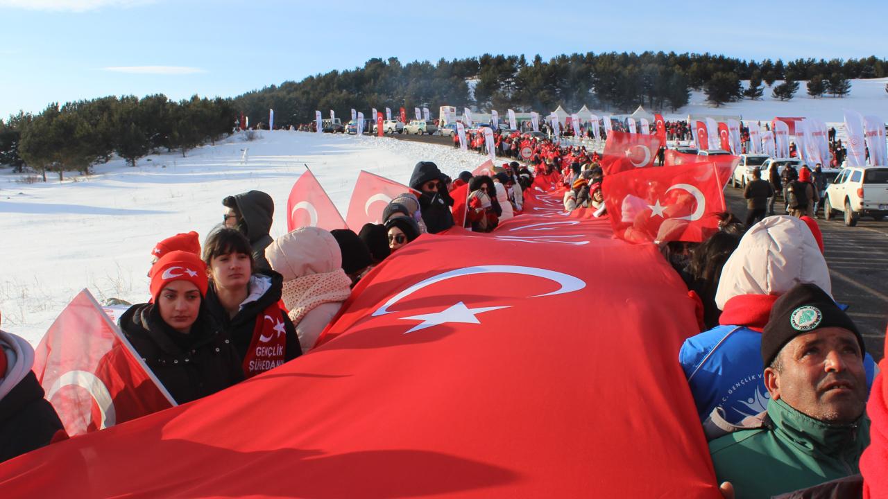 Kent merkezi ile Sarıkamış ilçesinden otobüslerle zirveye ulaşan katılımcılar, Türk bayraklarıyla yürüyerek toplanma alanına geldi. Vatandaşlar, Kızılçubuk bölgesinde şehitler anısına yapılan kardan heykellerin önünde fotoğraf çektirdi.