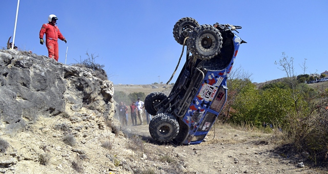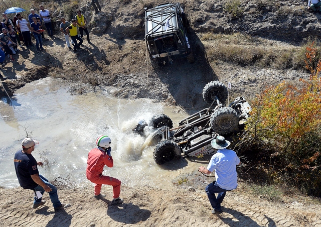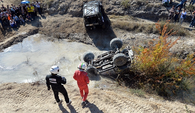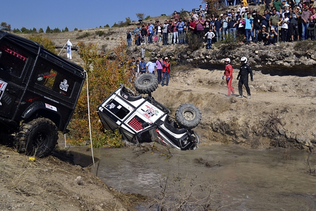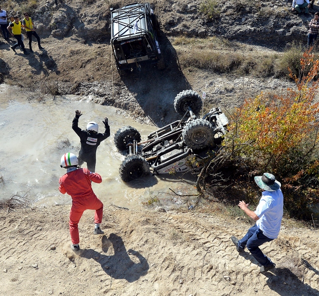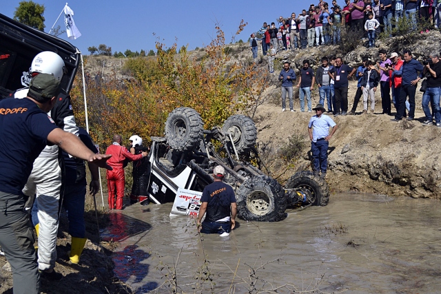 Kaza yapan ve suya devrilen aracın pilotu, boğulma tehlikesi geçirdi.