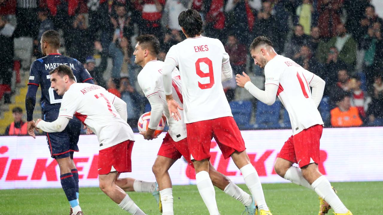 Milli takımın gollerini 16`ncı dakikada penaltıdan Cengiz Ünder, 39. dakikada kendi kalesine Chanot ve 87.i dakikada İsmail Yüksek kaydetti.