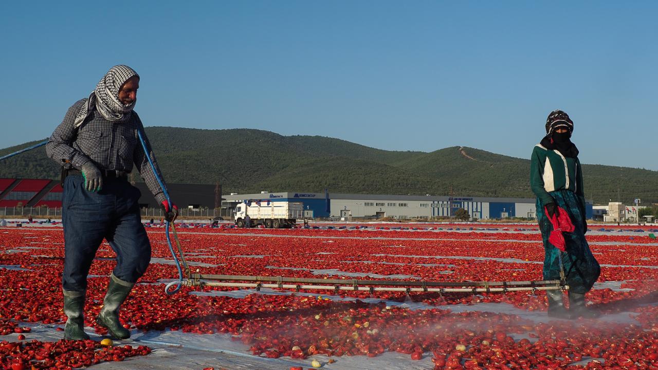 Ege`nin verimli ovalarında yetişen ve güneşte kurutulan domatesler, işlemlerin ardından başta ABD ve Avrupa ülkeleri başta olmak üzere çeşitli ülkelere ihraç ediliyor.