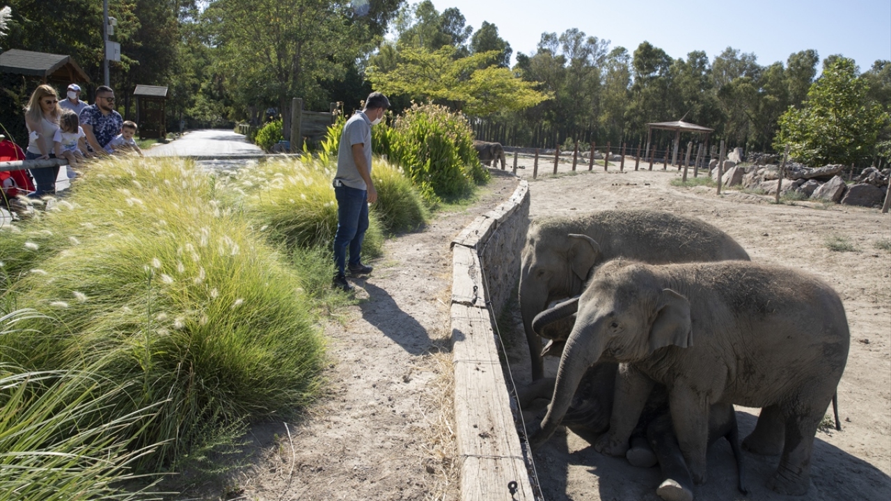 Parkta yaşamını sürdüren Begümcan ve Winner isimli fillerin yavrusu olarak Şubat 2011`de dünyaya gelen ve İzmir adı verilen fil de parkın simgelerinden biri haline geldi. (Fotoğraf: AA)