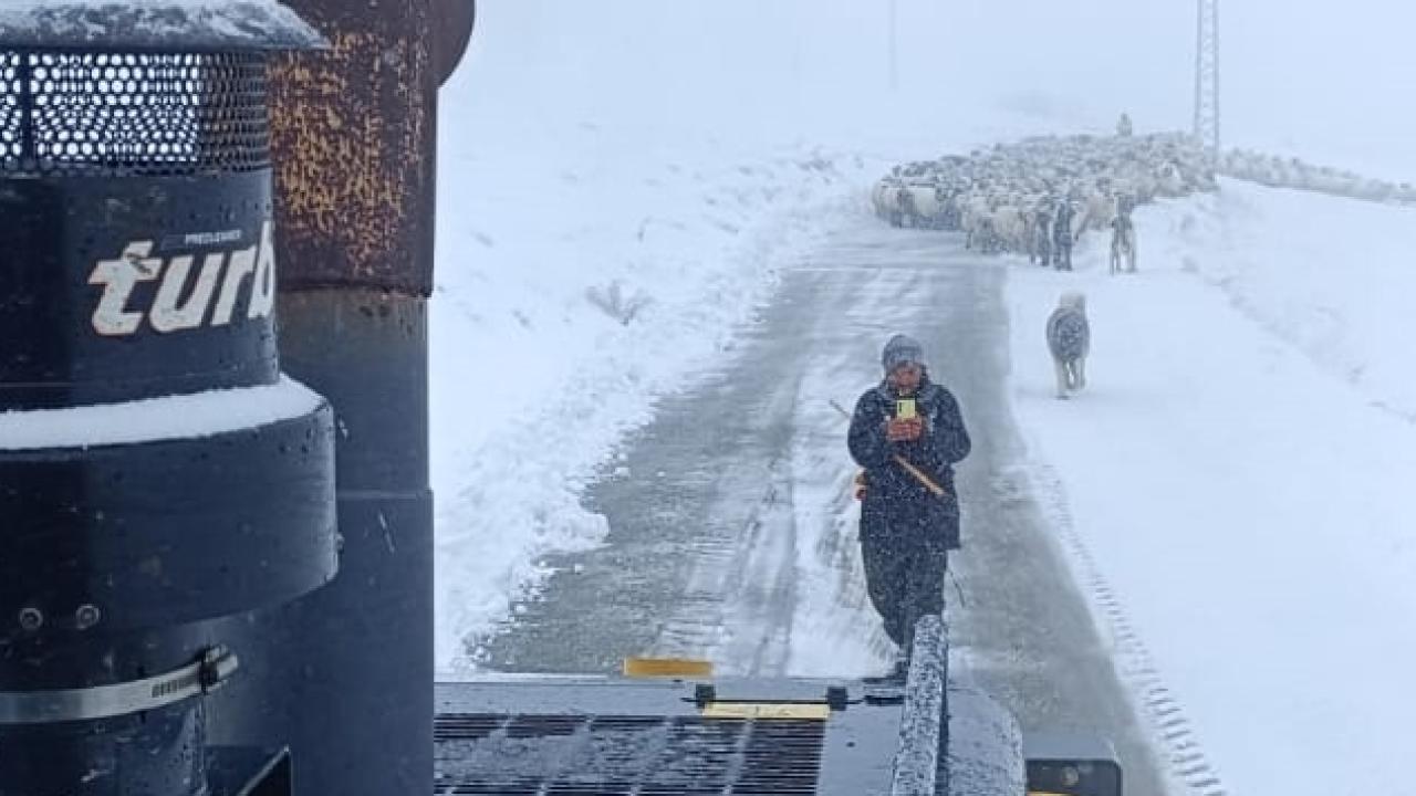 Trabzon`un Düzköy ilçesine bağlı Beypınarı Yaylası Caferli Obası`nda yoğun kar nedeniyle yollar ulaşıma kapandı. Bölgede çobanlık yapan Murat Akbulut da yaklaşık bin koyunuyla yaylada mahsur kaldı.