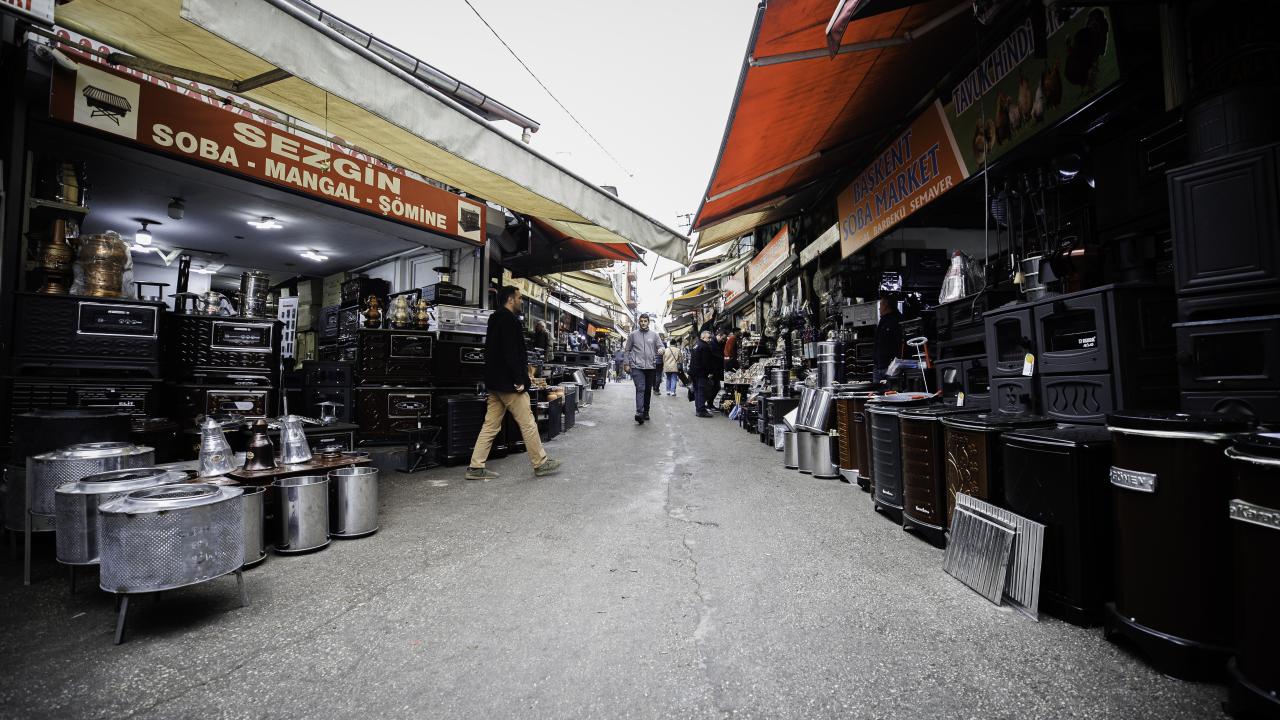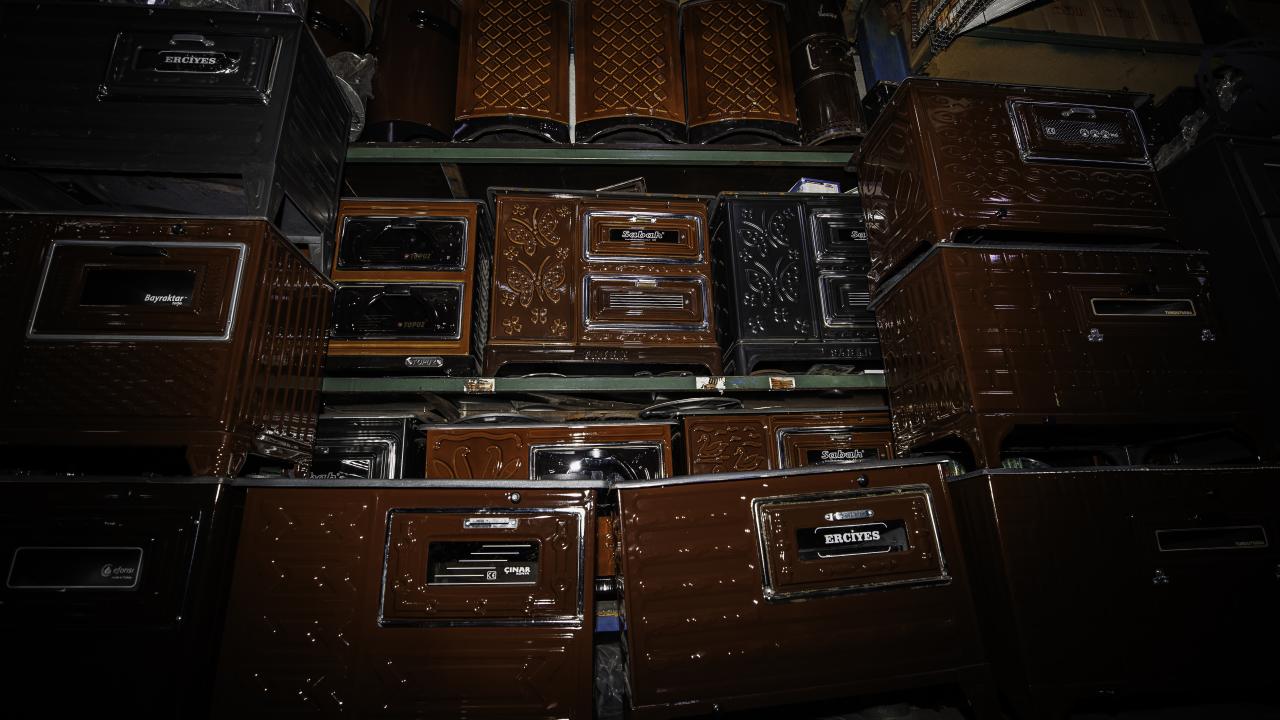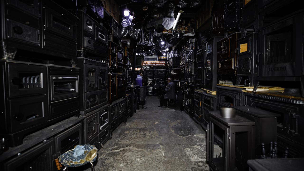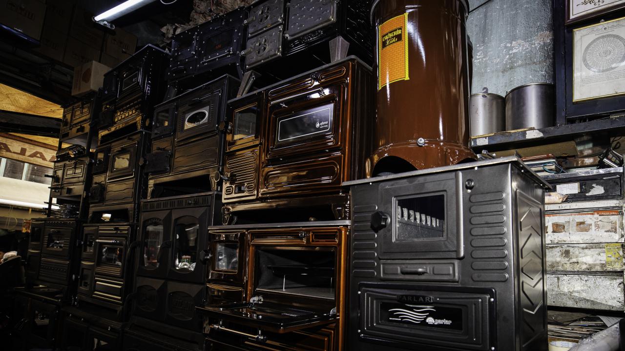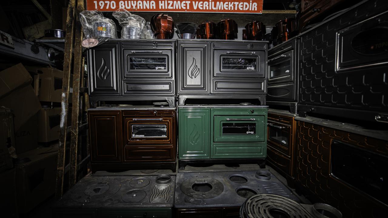 Ankara`nın Ulus semtinde yer alan tarihi Sobacılar Çarşısı esnafı, yurt içi ve dışından gelen kuzine, şömine ve pelet soba taleplerini karşılamak için yoğun mesai yapıyor.