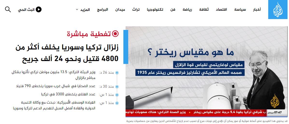Katar merkezli El-Cezire: Türkiye ve Suriye`deki depremlerde 4 bin 800 kişi hayatını kaybetti. 24 bin civarında yaralı var.
