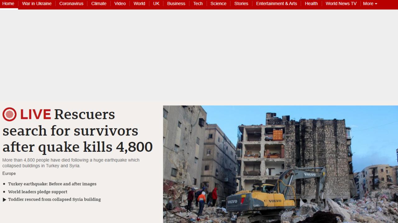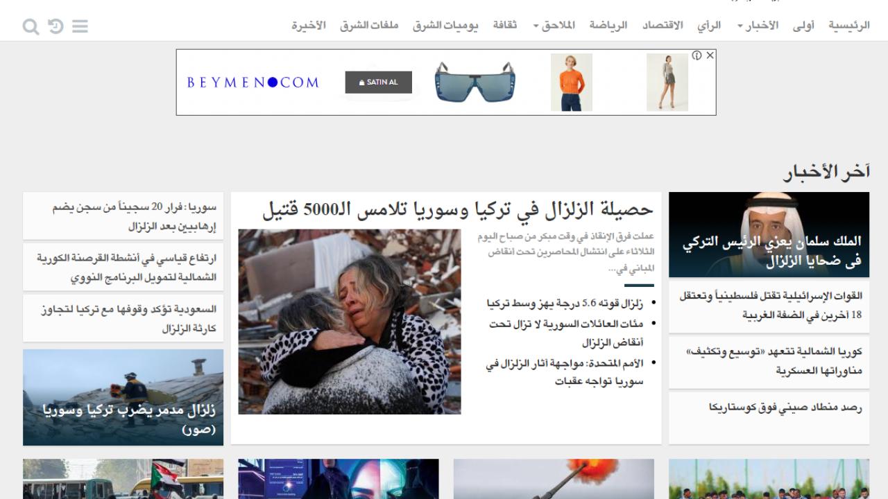 Londra`dan yayın yapan Suudi Arabistan yayın organı Şarku`l Awsat: Türkiye ve Suriye`deki depremde hayatını kaybedenlerin sayısı 5 bine yaklaştı.