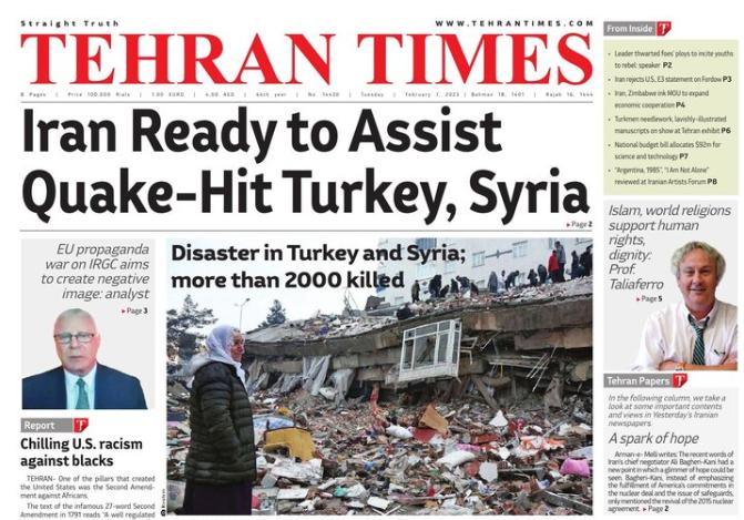 İran merkezli Tehran Times da depremi manşetine taşıdı.