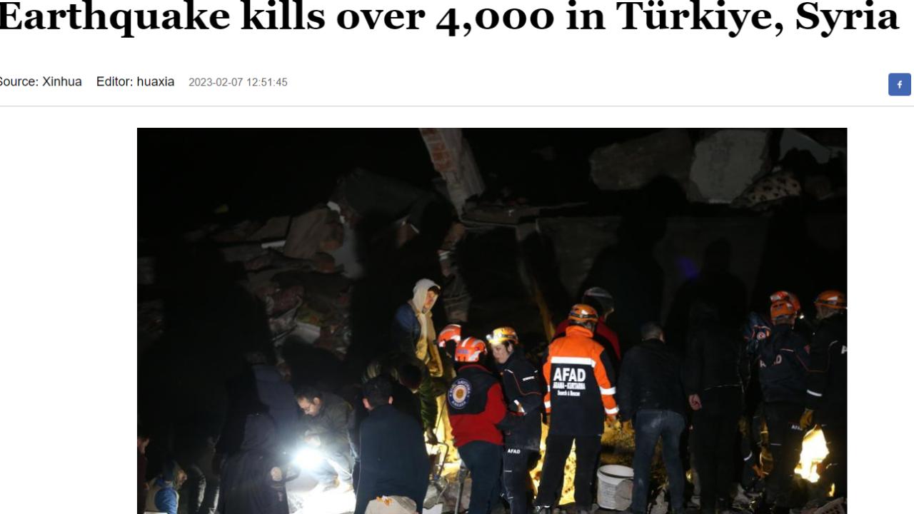 Çin haber ajansı Xinhua: Türkiye ve Suriye`deki depremde 4 binden fazla insan hayatını kaybetti.