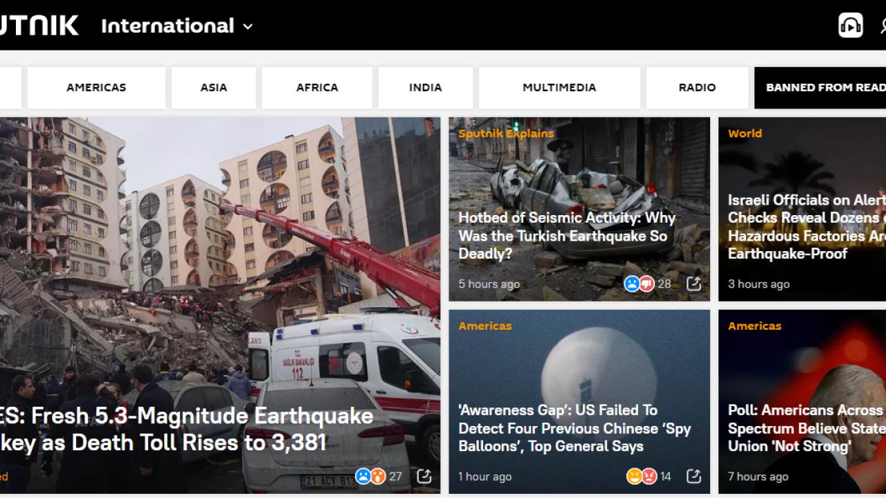 Rus haber ajansı Sputnik de depreme sayfasında büyük yer ayırdı. Depremle ilgili gelişmeler güncellenerek verildi.