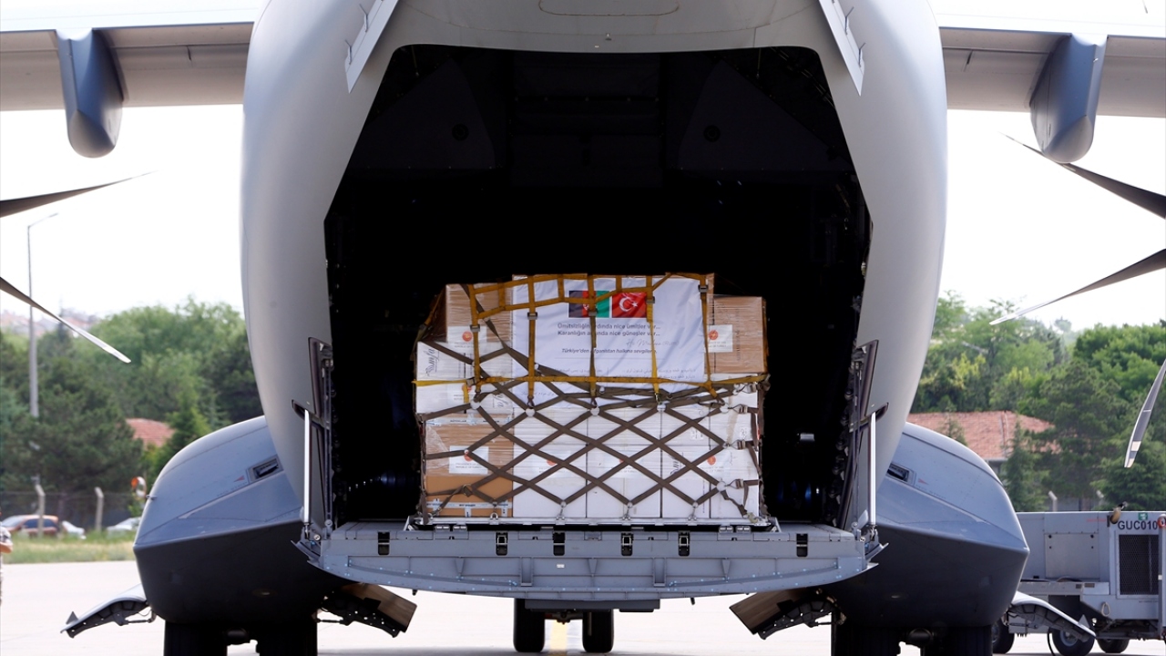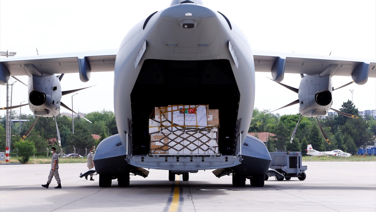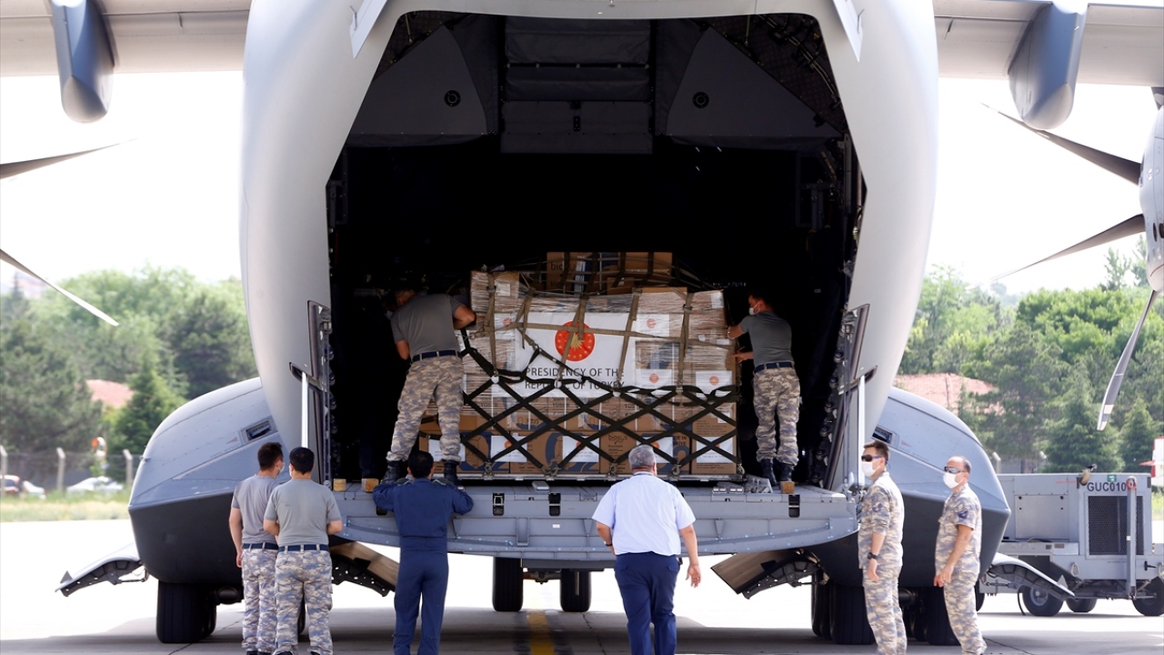 Bu kapsamda Sağlık Bakanlığınca hazırlanan 10`ar ventilatör, oksijen regülatörü, defibrilatör, nebulizatör, 3 PCR cihazı, 30 bin Kovid-19 RT-q PCR tanı tespit kiti, 25 bin N95 maske ile 50 bin cerrahi ve normal maskeden oluşan tıbbi ve laboratuvar ekipmanı Etimesgut Askeri Havaalanı`nda Türk Hava Kuvvetleri`ne ait A400M tipi askeri nakliye uçağına yüklendi.