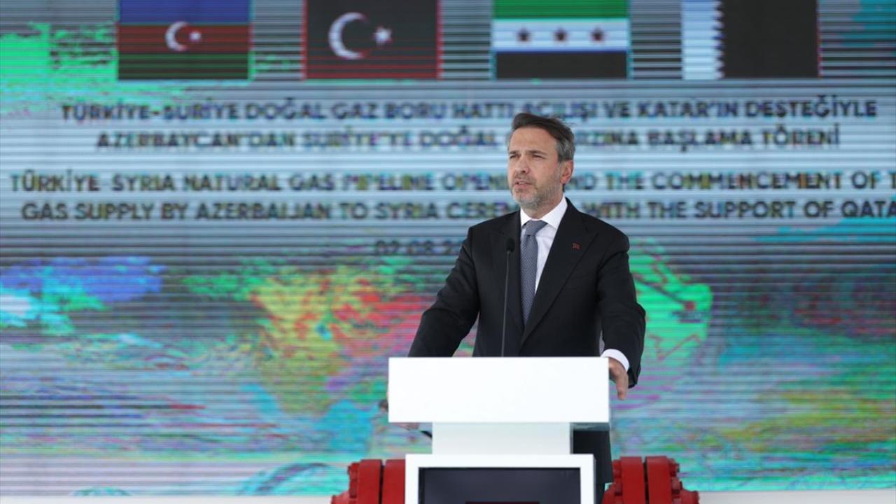 Enerji ve Tabii Kaynaklar Bakanı Alparslan Bayraktar, Türkiye`den Suriye`ye doğal gaz akışının başlamasına ilişkin, "Türkiye-Suriye dostluğunun enerji alanındaki nişanesi olan Türkiye-Suriye Doğal Gaz Boru Hattı`nın açılışını gerçekleştiriyoruz." dedi.