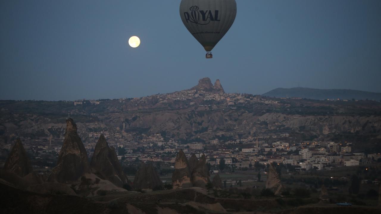 Antalya`da akşam saatlerinde gökyüzünde beliren dolunay güzel görüntü oluşturdu.