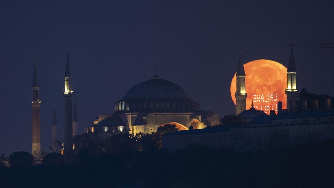 "Süper Ay" İstanbul`da Sultanahmet Camisi (solda) ve Ayasofya-i Kebir Cami-i Şerifi (sağda) ile güzel görüntü oluşturdu.
