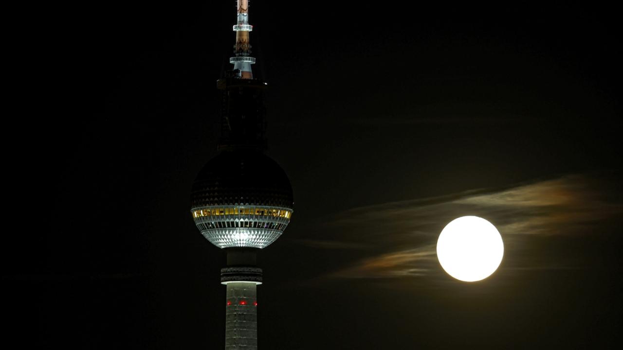 "Süper Ay" Berlin`deki Tv Kulesi ile güzel görüntü oluşturdu.