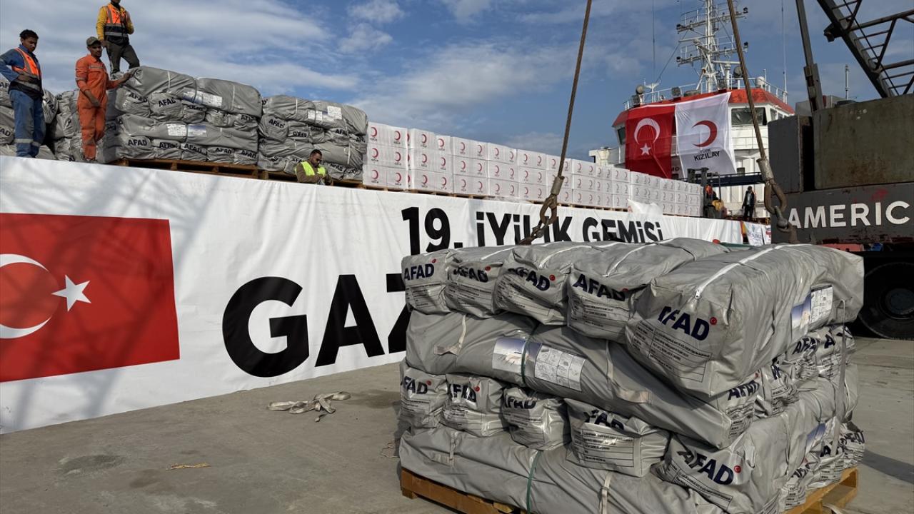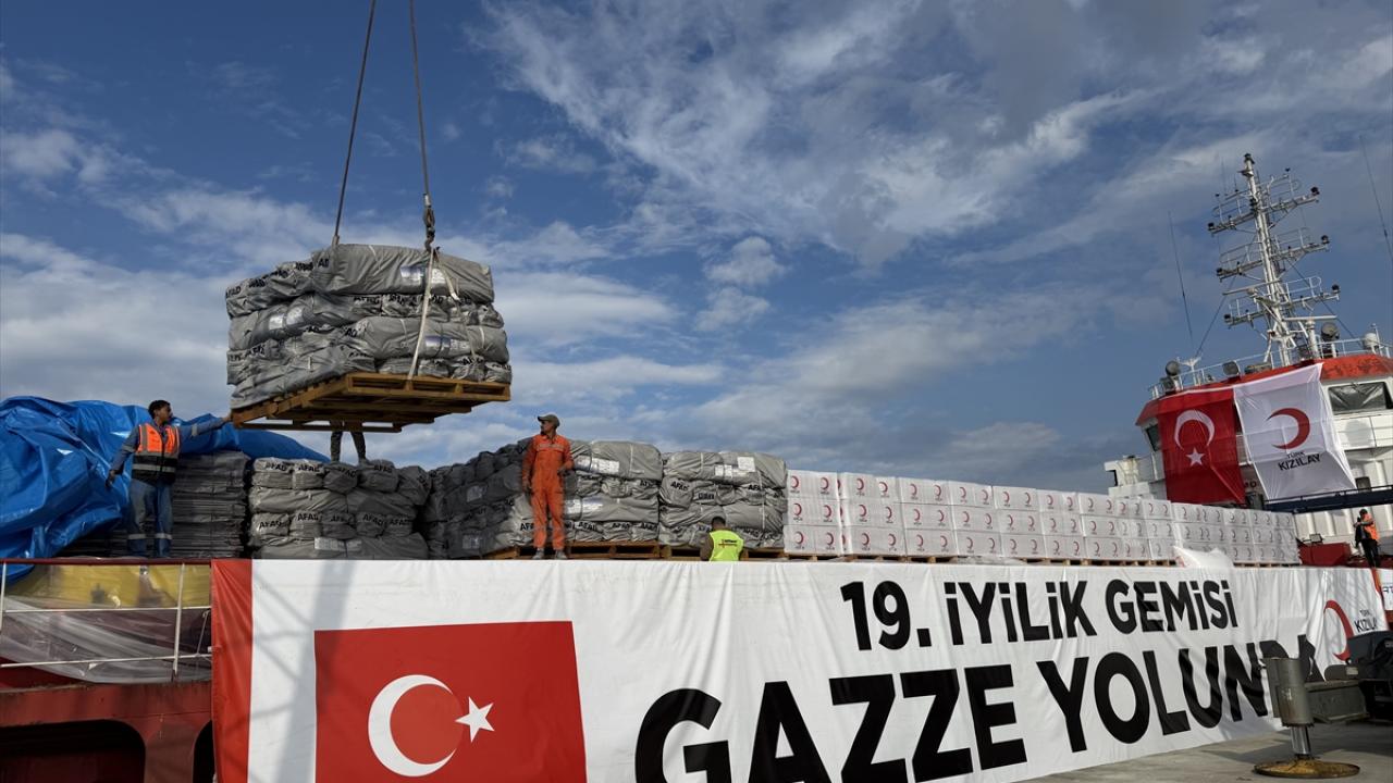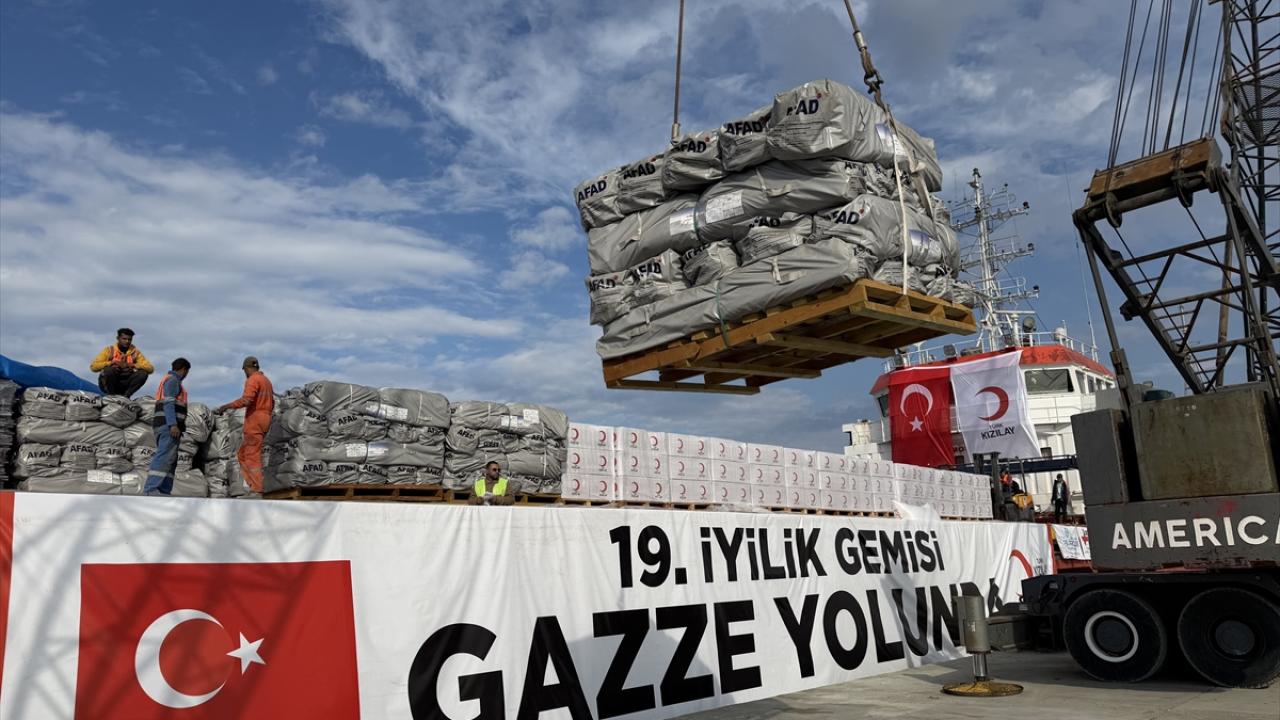 Gazze`ye gönderilmek üzere hazırlanan ve yaklaşık 1300 ton insani yardım malzemesi bulunan 19. "İyilik Gemisi", iki gün önce Mersin Uluslararası Limanı`ndan uğurlanmıştı.