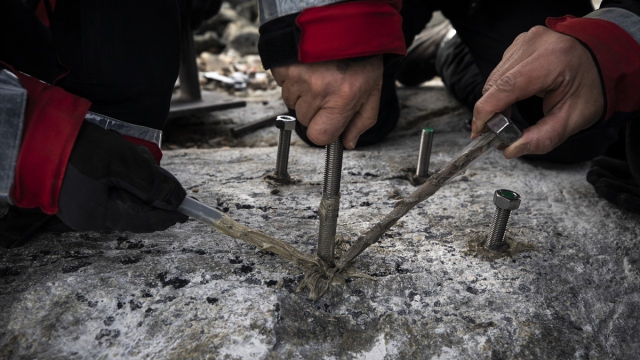 Yıkılmaz, şiddetli rüzgar nedeniyle malzemeleri taşımakta zorluk yaşadıklarını belirterek, yaklaşık 450 kilogram ağırlığındaki malzemeleri ilk olarak helikopterle Horseshoe Adası kıyısına ulaştırdıklarını, daha sonra buradan istasyonun kurulacağı tepeye taşıdıklarını anlattı.