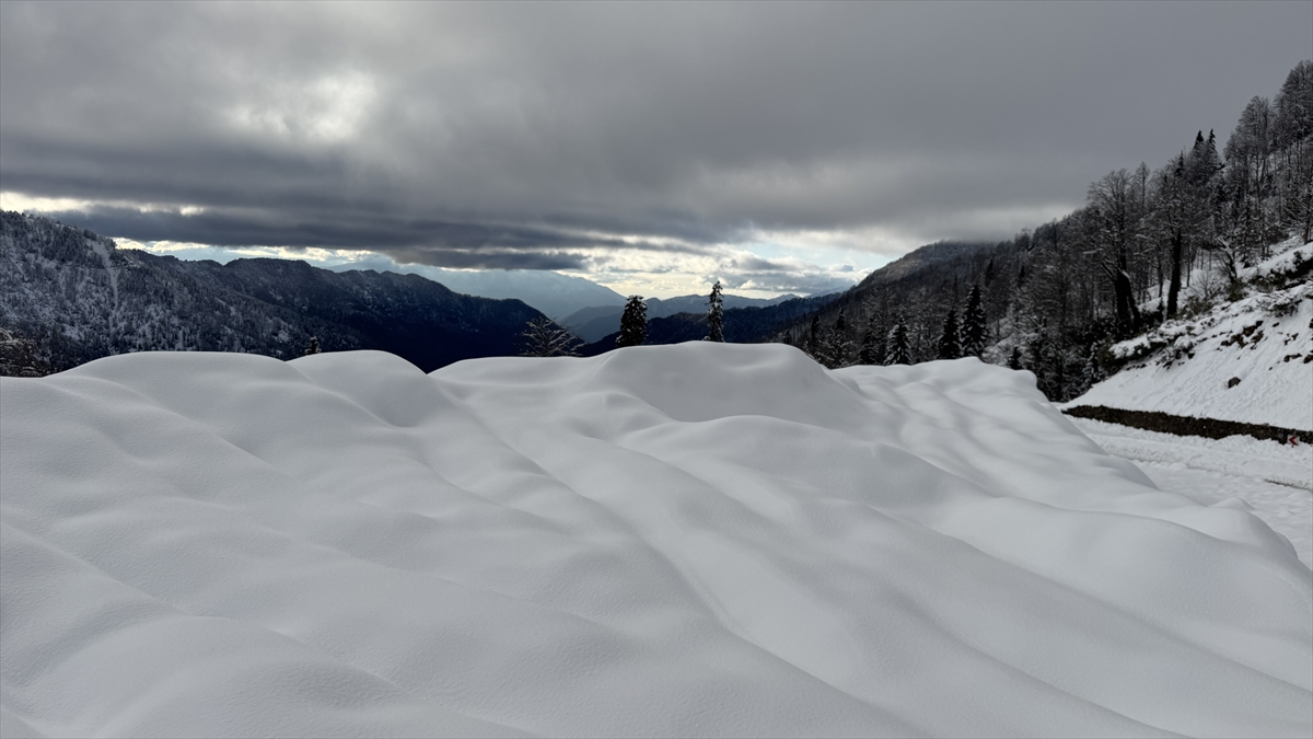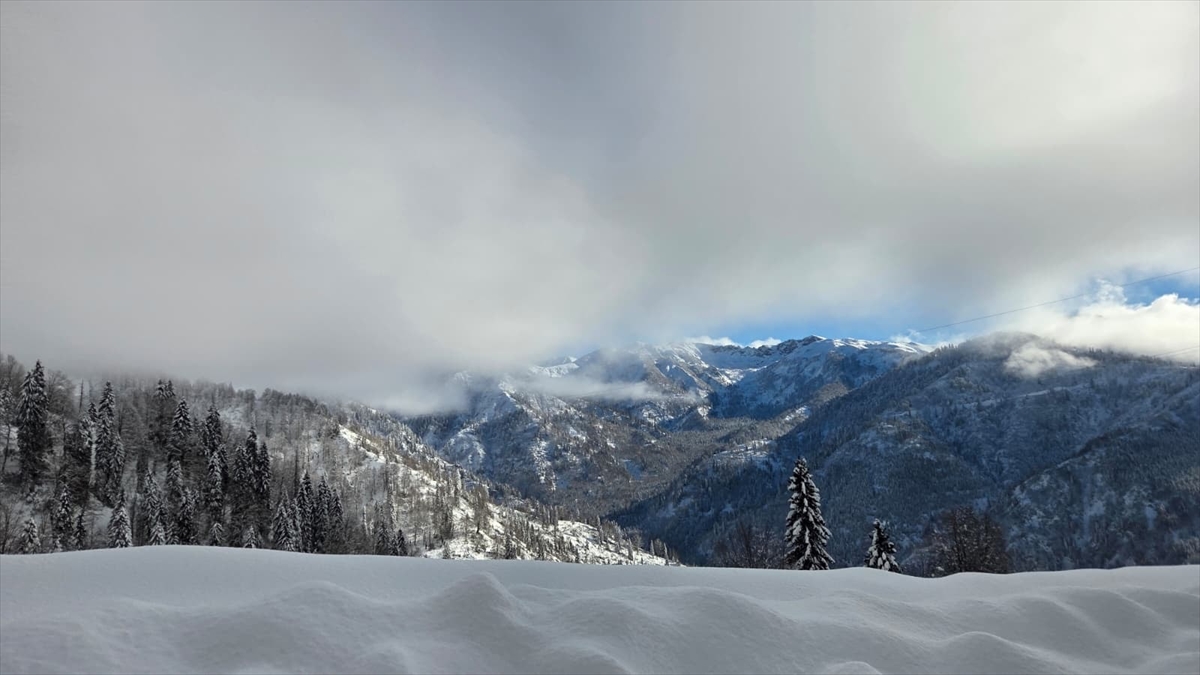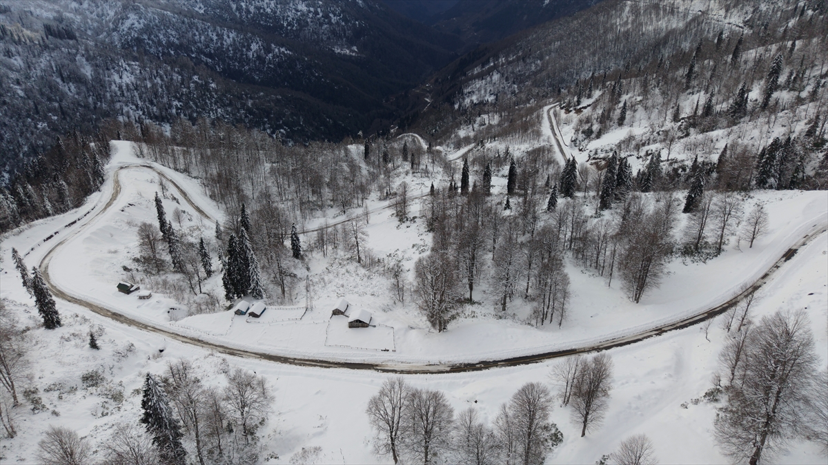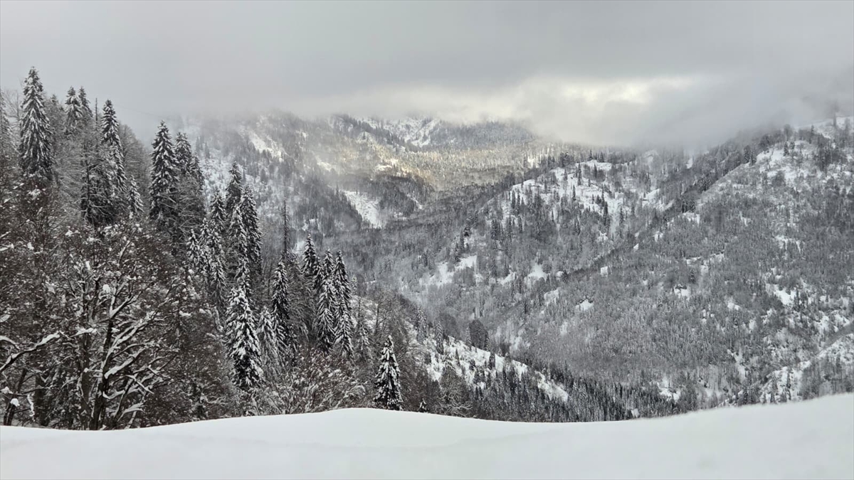 Türkiye'nin tek biyosfer rezervi alanı olma özelliğini taşıyan, zengin flora ve kültürel mirasa sahip Artvin'in Borçka ilçesine bağlı Camili (Macahel) Havzası, kar yağışının ardından beyaza büründü.