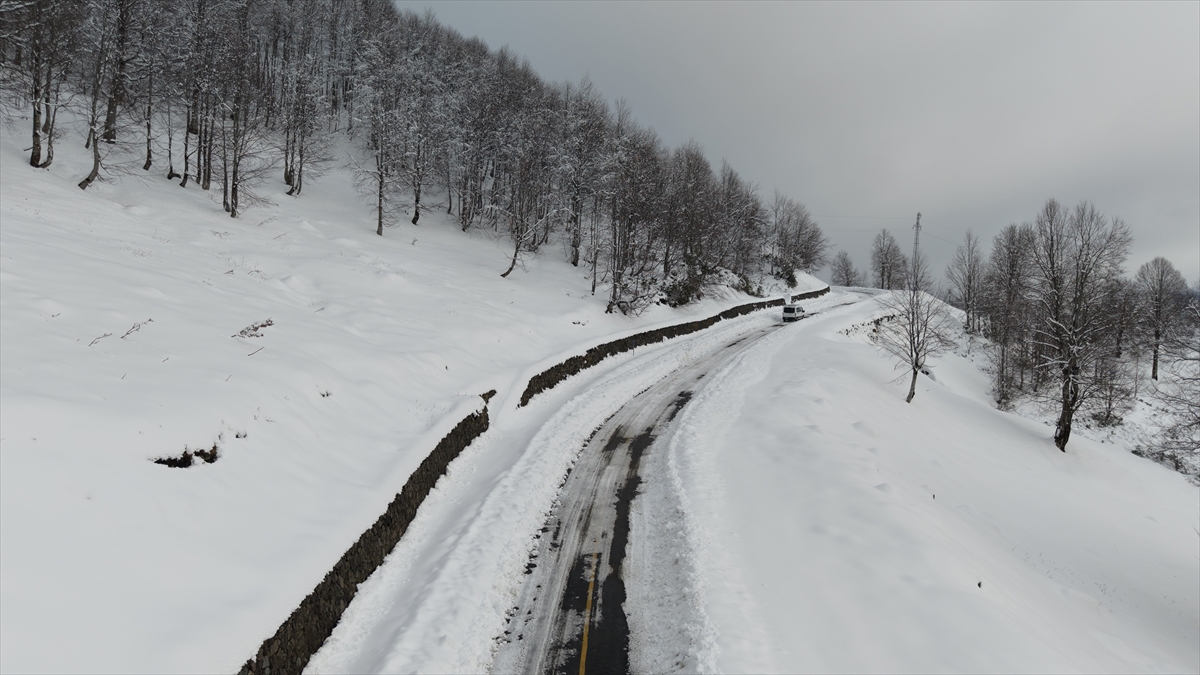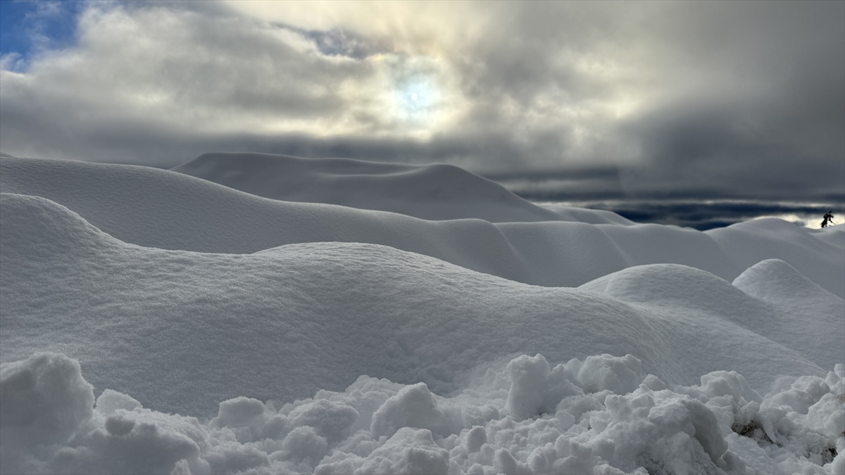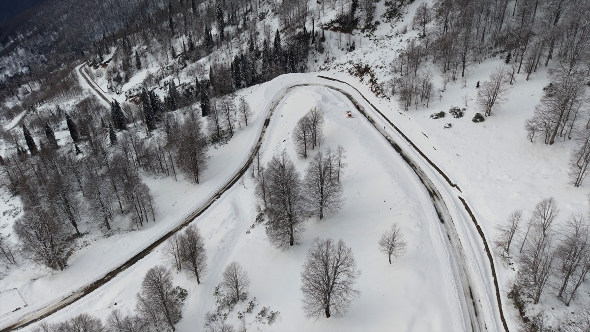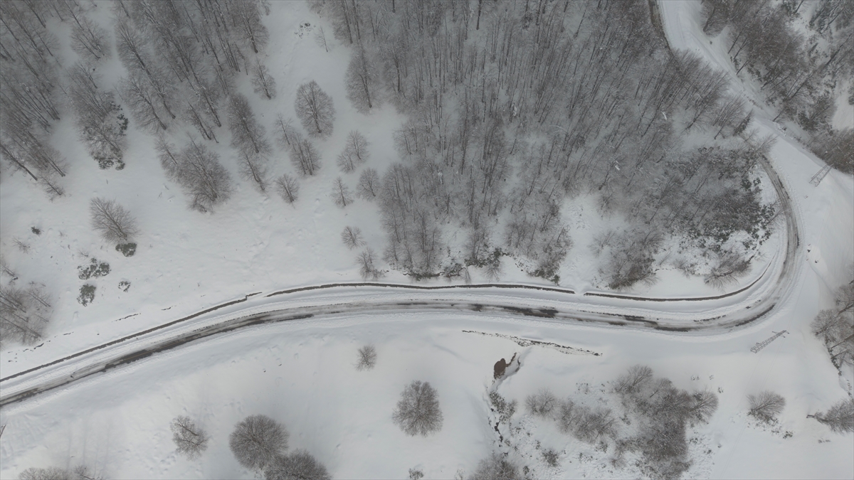 Yaklaşık 1850 rakımlı ve kar kalınlığının yer yer 1 metreyi bulduğu bölge, dron ile görüntülendi.