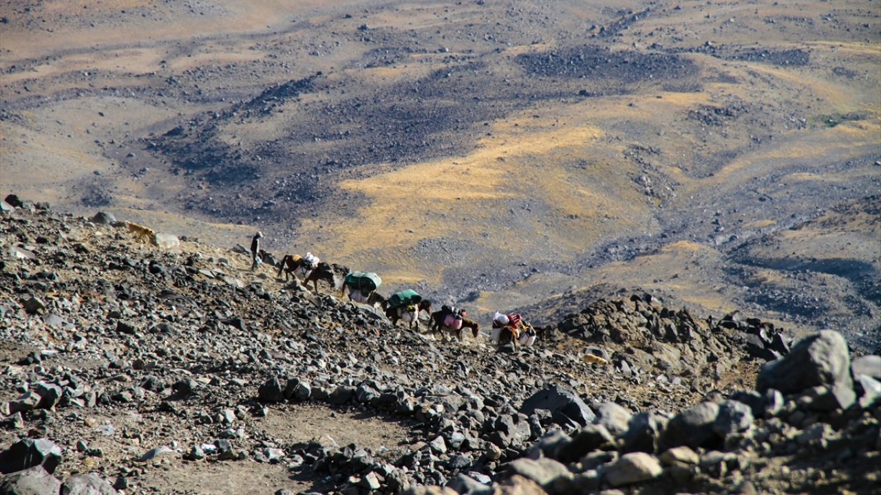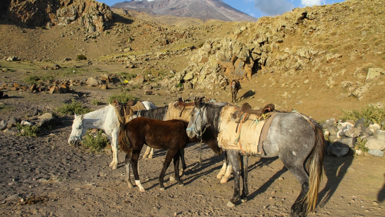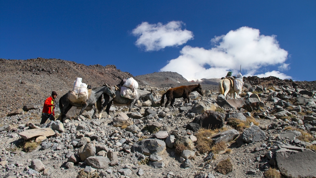 Dayanıklı ve güçlü yapıları nedeniyle bölgede köylülerin yük taşımada kullandığı katırlar, Ağrı Dağı'na tırmanış yapan sporcuların da vazgeçilmez yoldaşı oluyor.