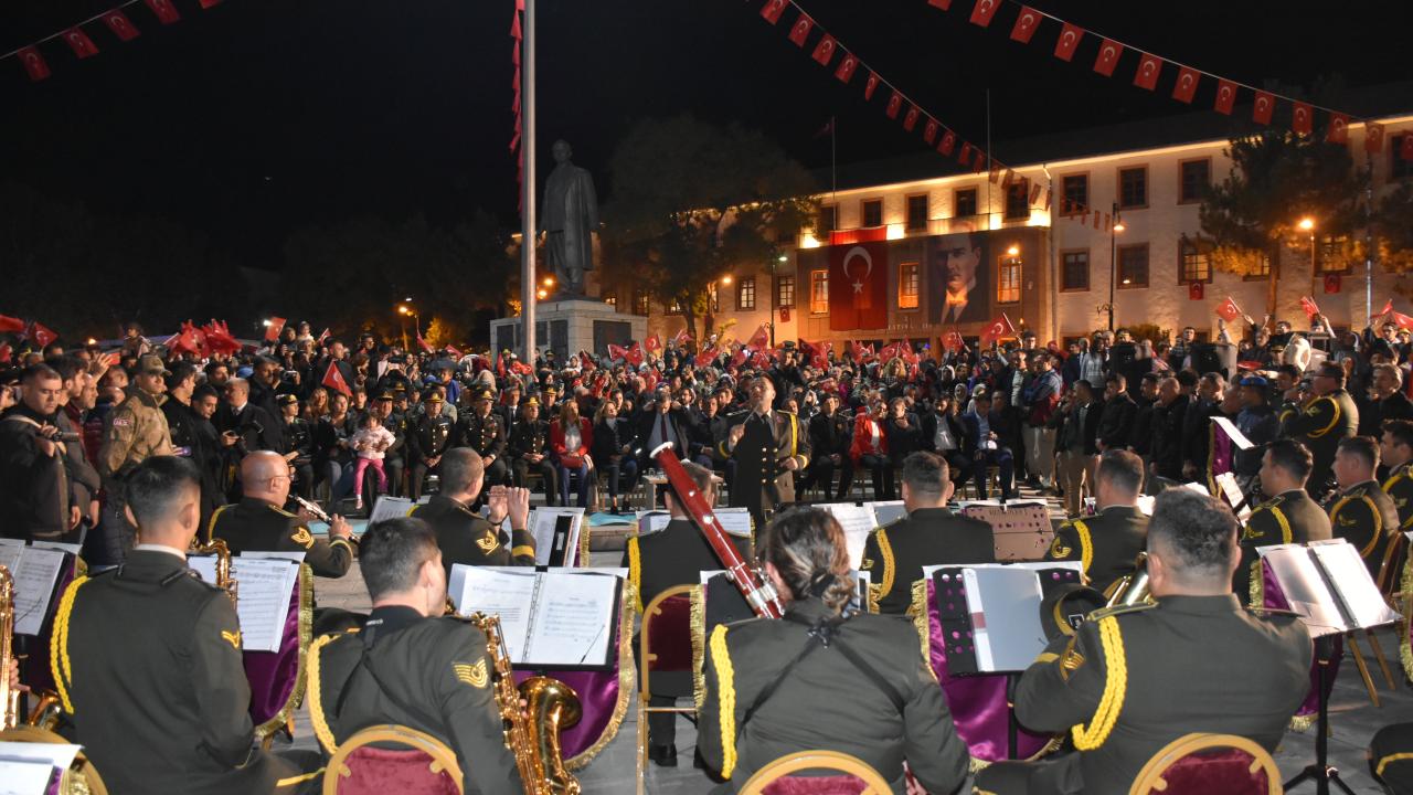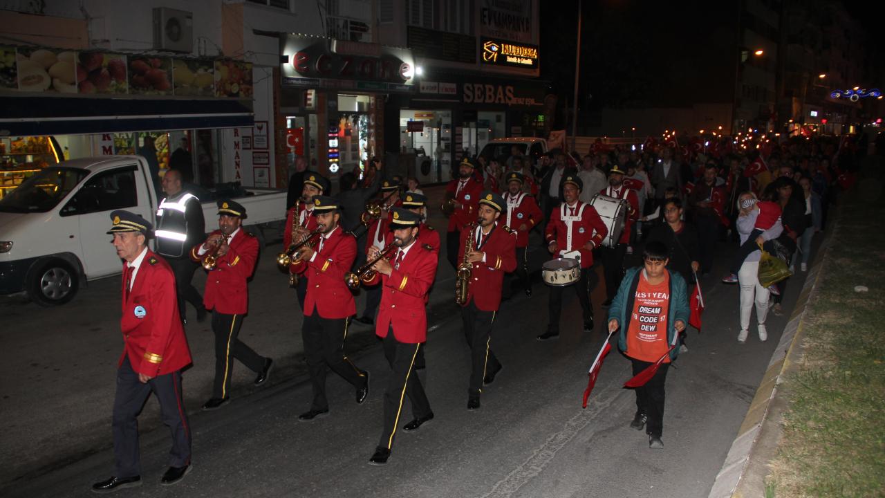 Gençlik ve Spor İl Müdürlüğünce organize edilen Cumhuriyet Bayramı etkinlikleri çerçevesinde Belediye Meydanı`nda toplanan vatandaşlar, ellerindeki meşalelerle Belediye Bandosu eşliğinde İstanbul Caddesi boyunca yürüdü.