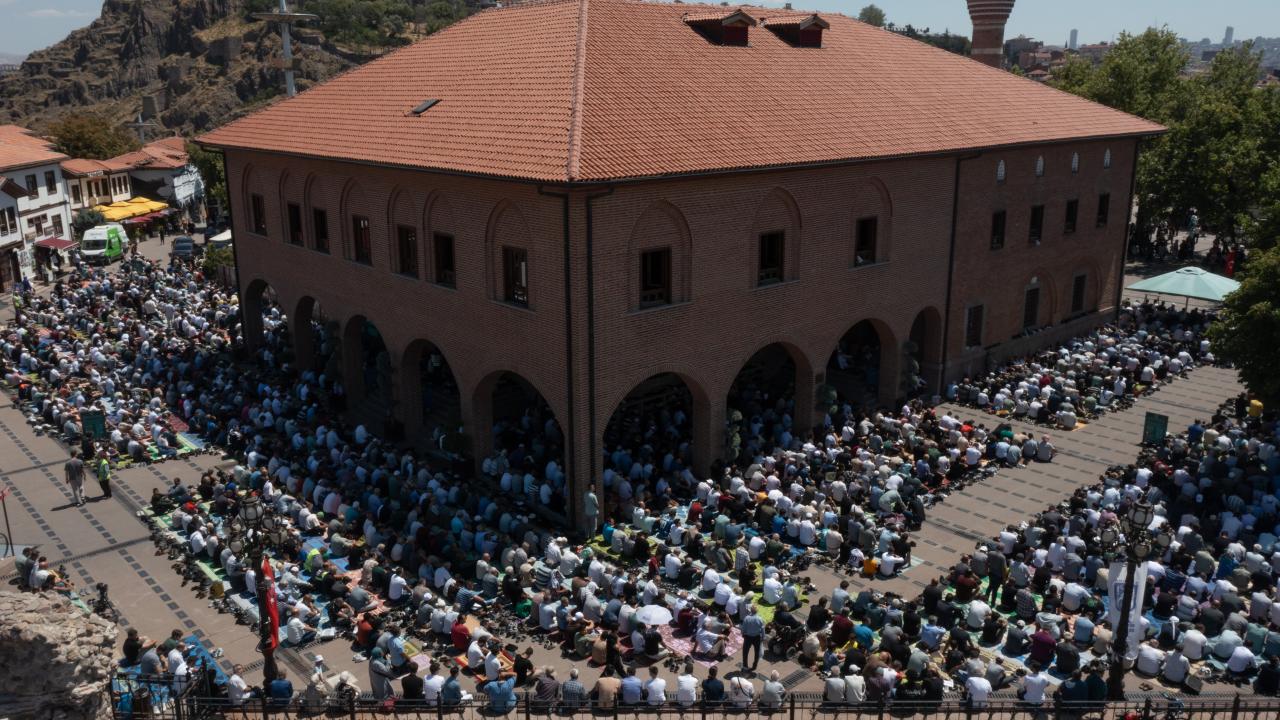 Hacı Bayram Veli Camisi`nde cuma namazının ardından binlerce kişi gıyabi cenaze namazı için saf tuttu.