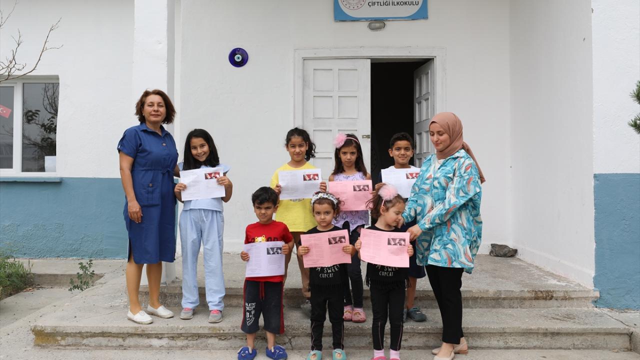 Dilucu`nda bulunan Tarım İşletmeleri Genel Müdürlüğü (TİGEM) Kazım Karabekir Çiftliğinin içindeki Devlet Üretme Çiftliği İlkokulunun 10 öğrencisi bulunuyor.