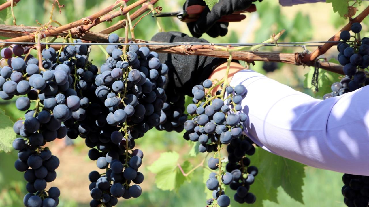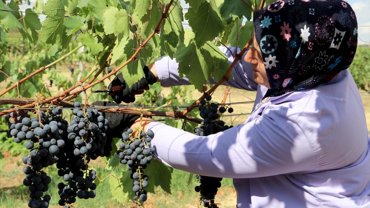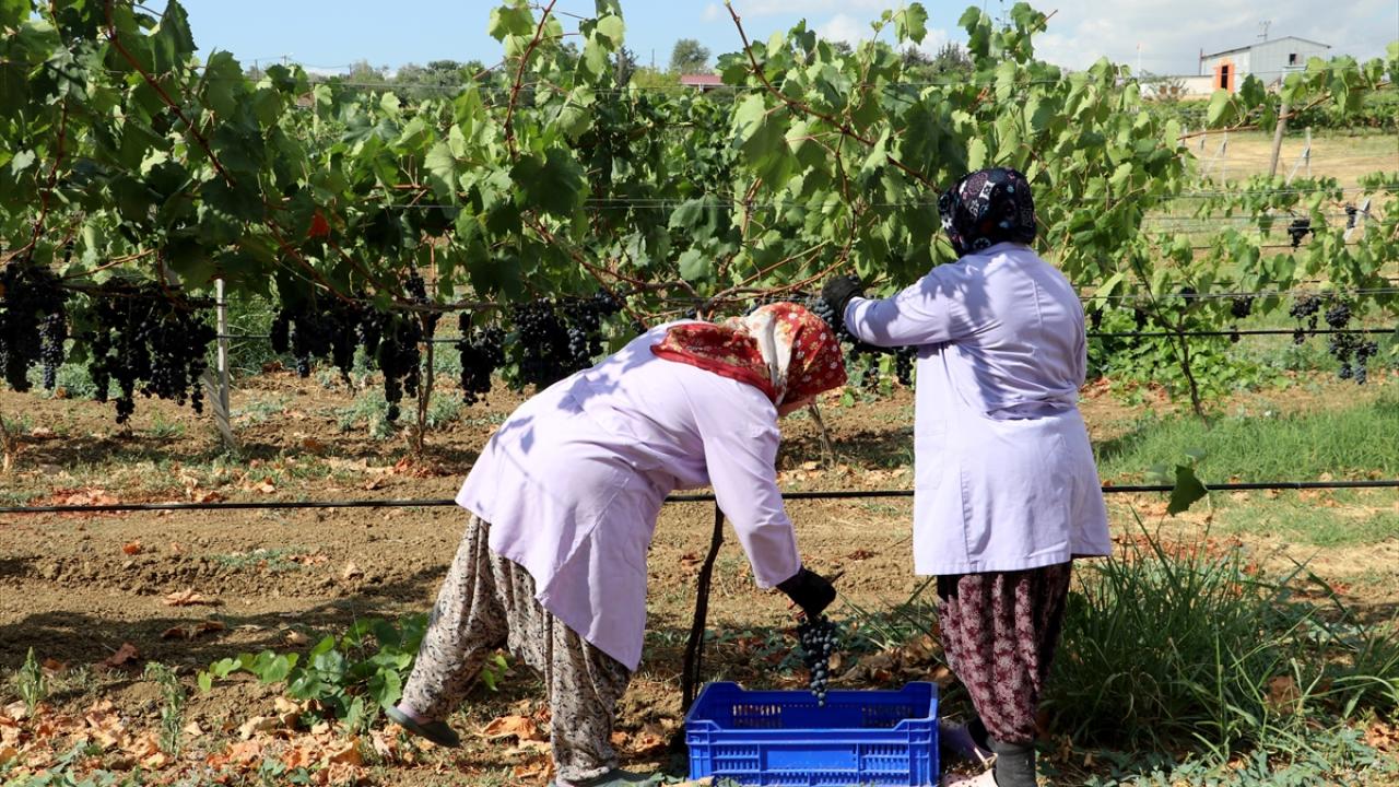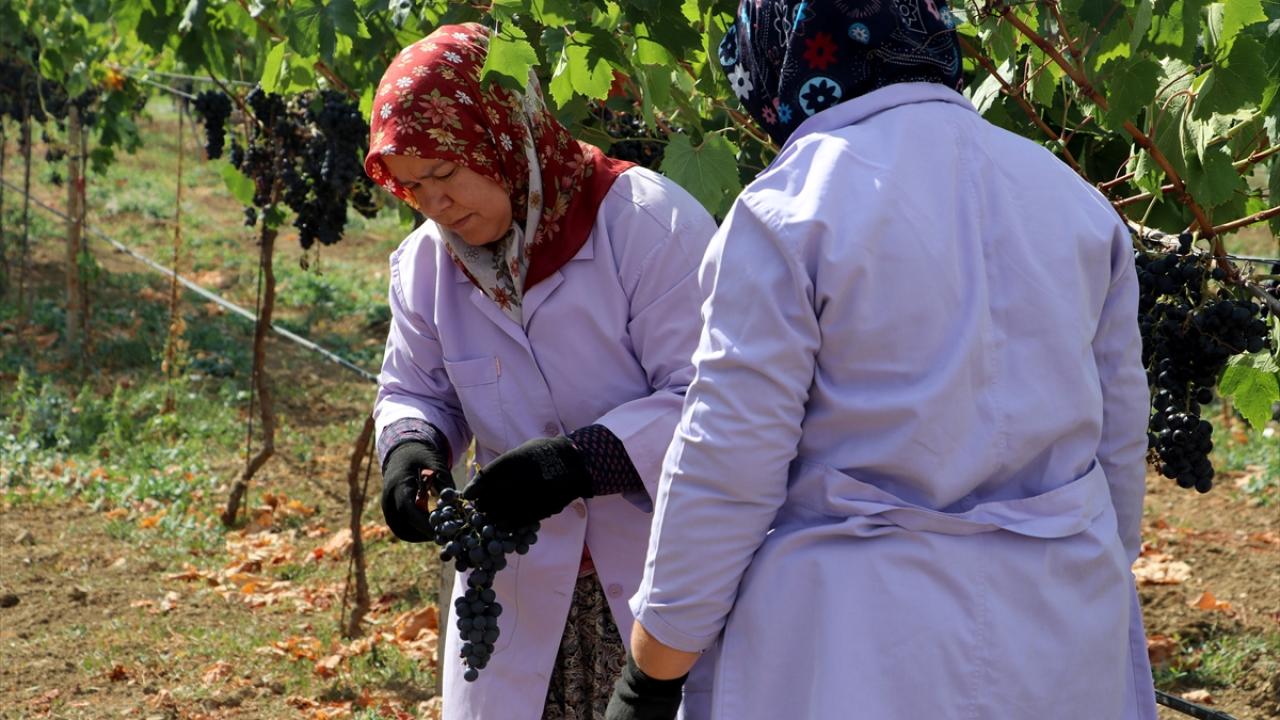 Enstitüye ait bağlarda sabah saatlerinde işçilerin hasat ettiği üzüm, kasalara doldurulduktan sonra traktörlerle kent merkezindeki satış noktalarına gönderiliyor.