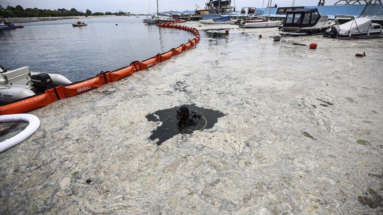Çevre ve Şehircilik Bakanlığının "Marmara Denizi Eylem Planı" kapsamında alınan kararların hayata geçirilmesi için kamu kurumları, belediyeler, akademik çevreler ile sivil toplum kuruluşlarınca başlatılan çalışma kapsamında, denizden müsilaj toplandı.
