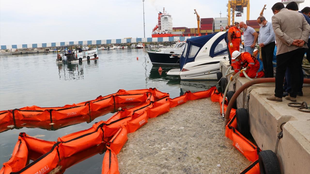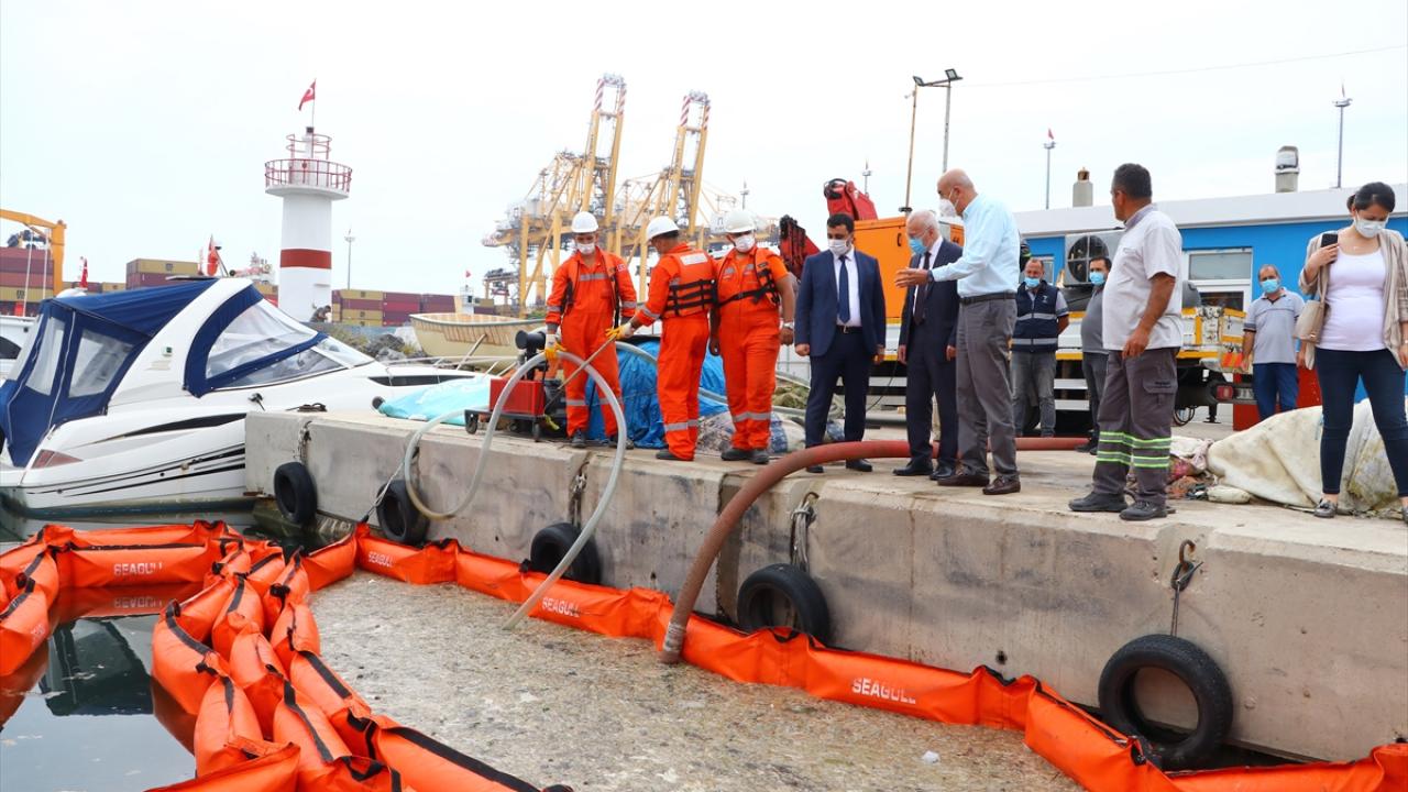 Çevre ve Şehircilik Bakanlığı tarafından başlatılan seferberlik kapsamında kente gelen ekipler, marina içinde kurulan bariyerlerle temizlik faaliyetine başladı.