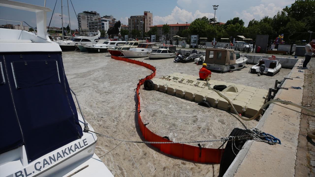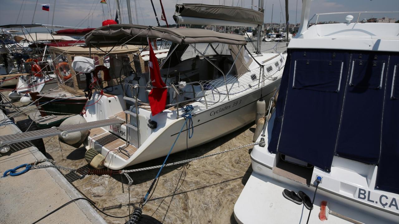 Çanakkale Marina`nın kuytu bölgelerinde biriken müsilaj ise teknelerin çevresini sardı.