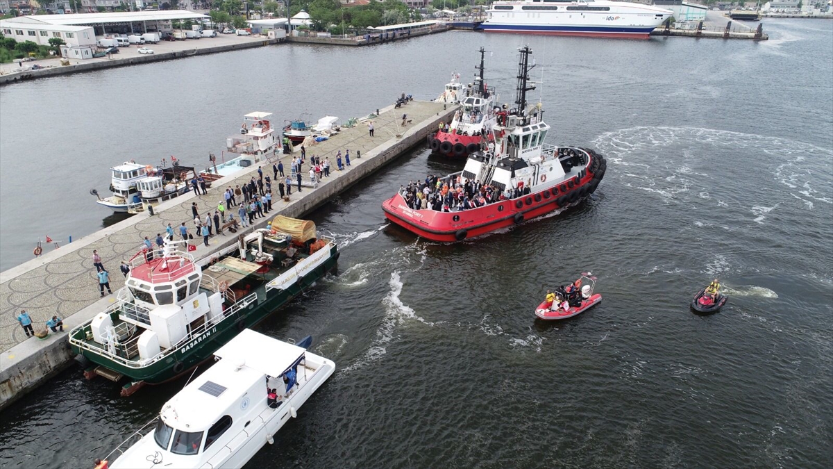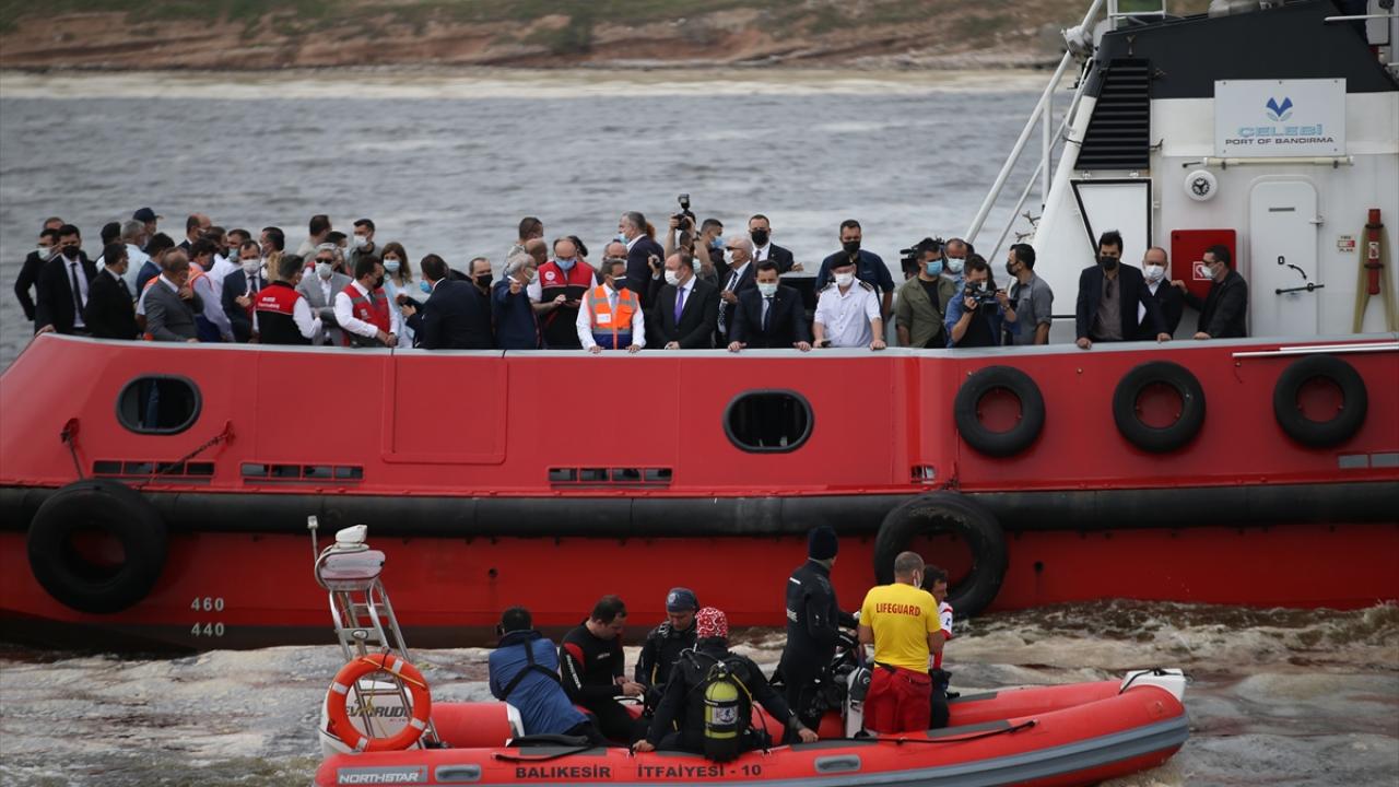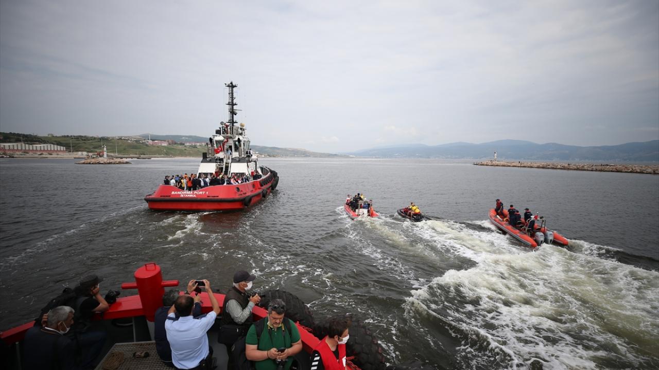 Bandırma Çelebi Limanı`na bağlı römorkörlerle denize açılan Vali Şıldak ve beraberindekiler, Büyükşehir Belediyesine ait müsilaj temizleme gemisi "Başaran-2"nin çalışmalarını inceledi.