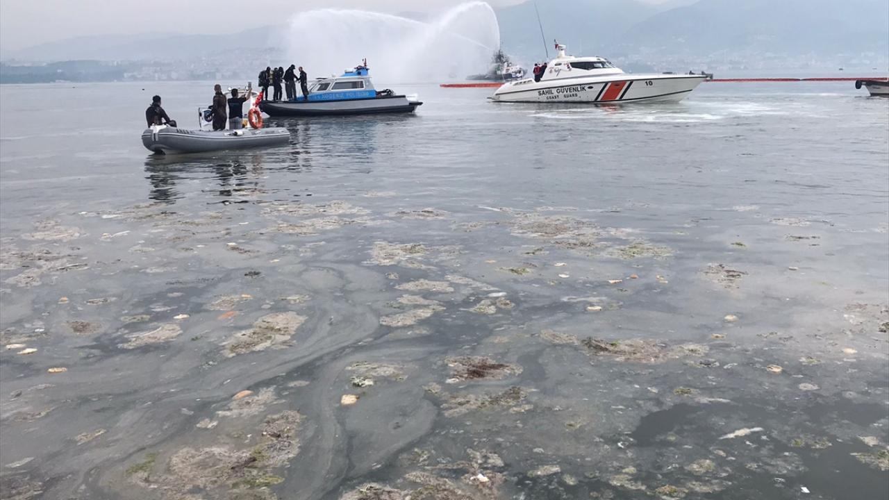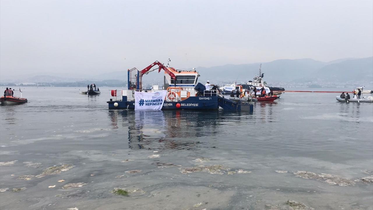 Çevre ve Şehircilik Bakanlığının, Marmara Denizi`ndeki müsilajla (deniz salyası) mücadele çalışması kapsamında Kocaeli`deki İzmit Körfezi`nde deniz temizliği seferberliği başlatıldı.