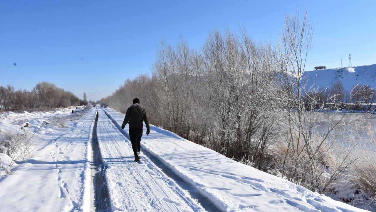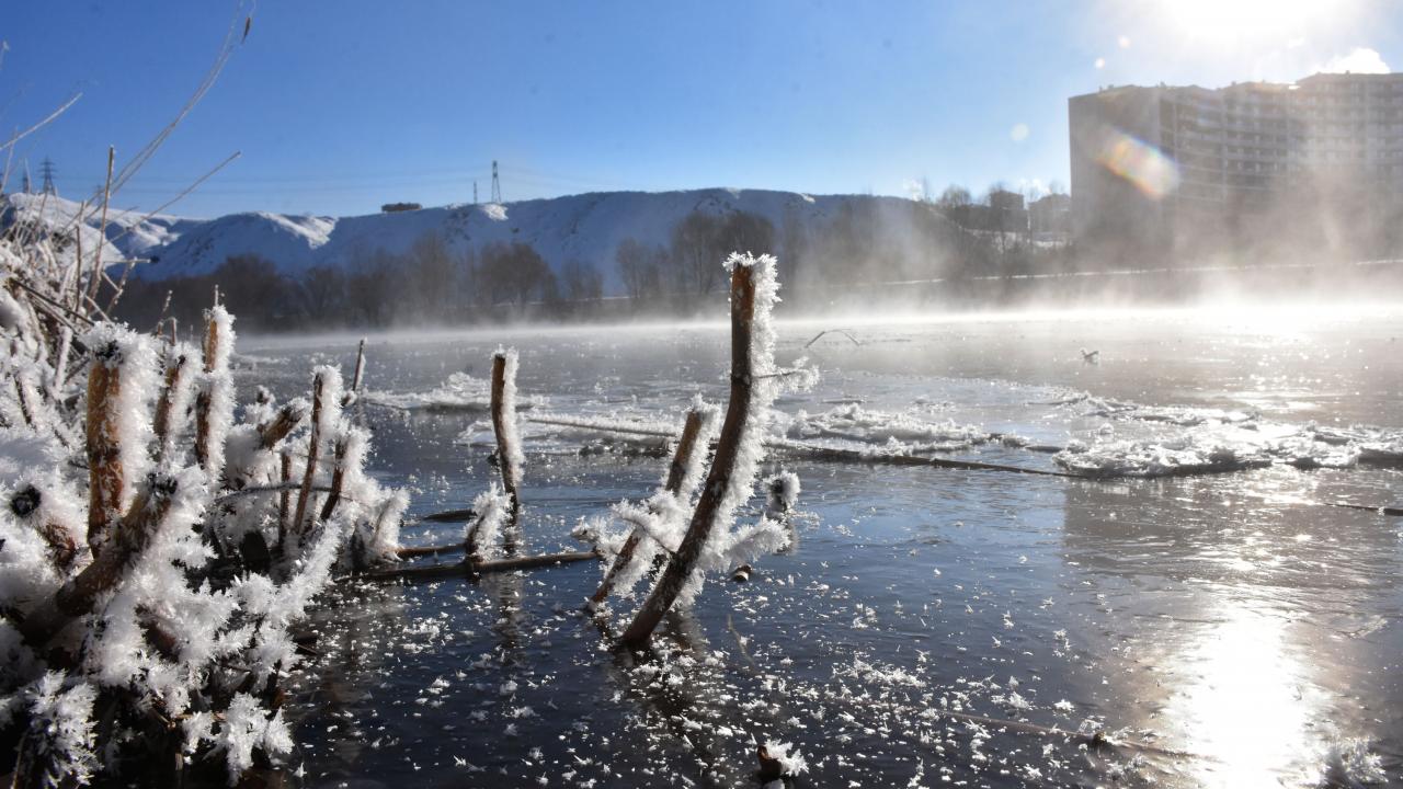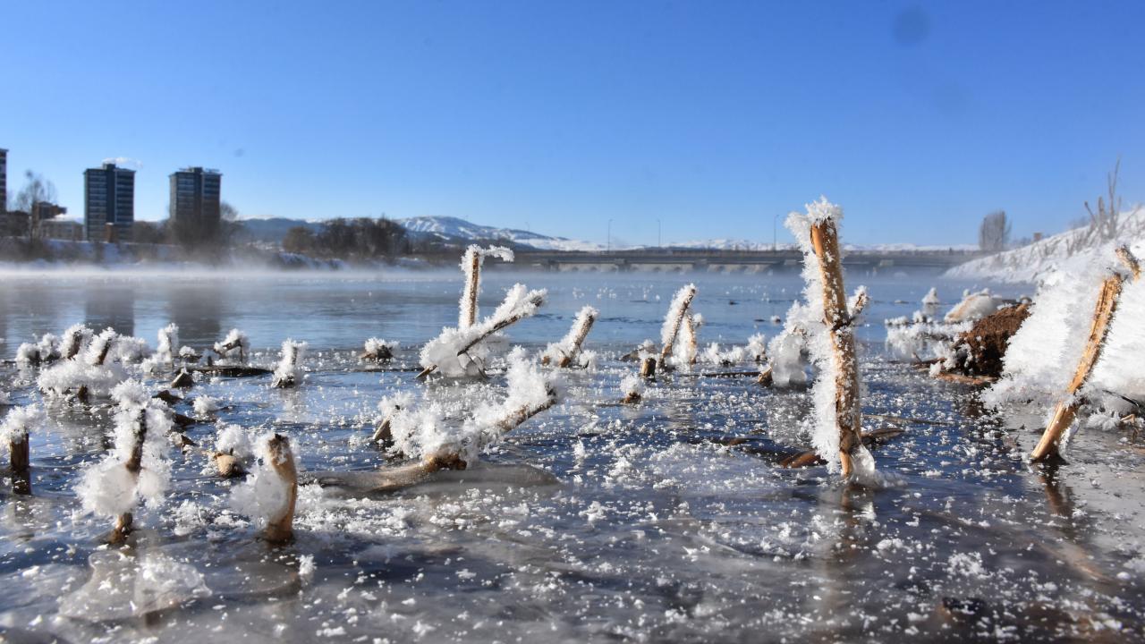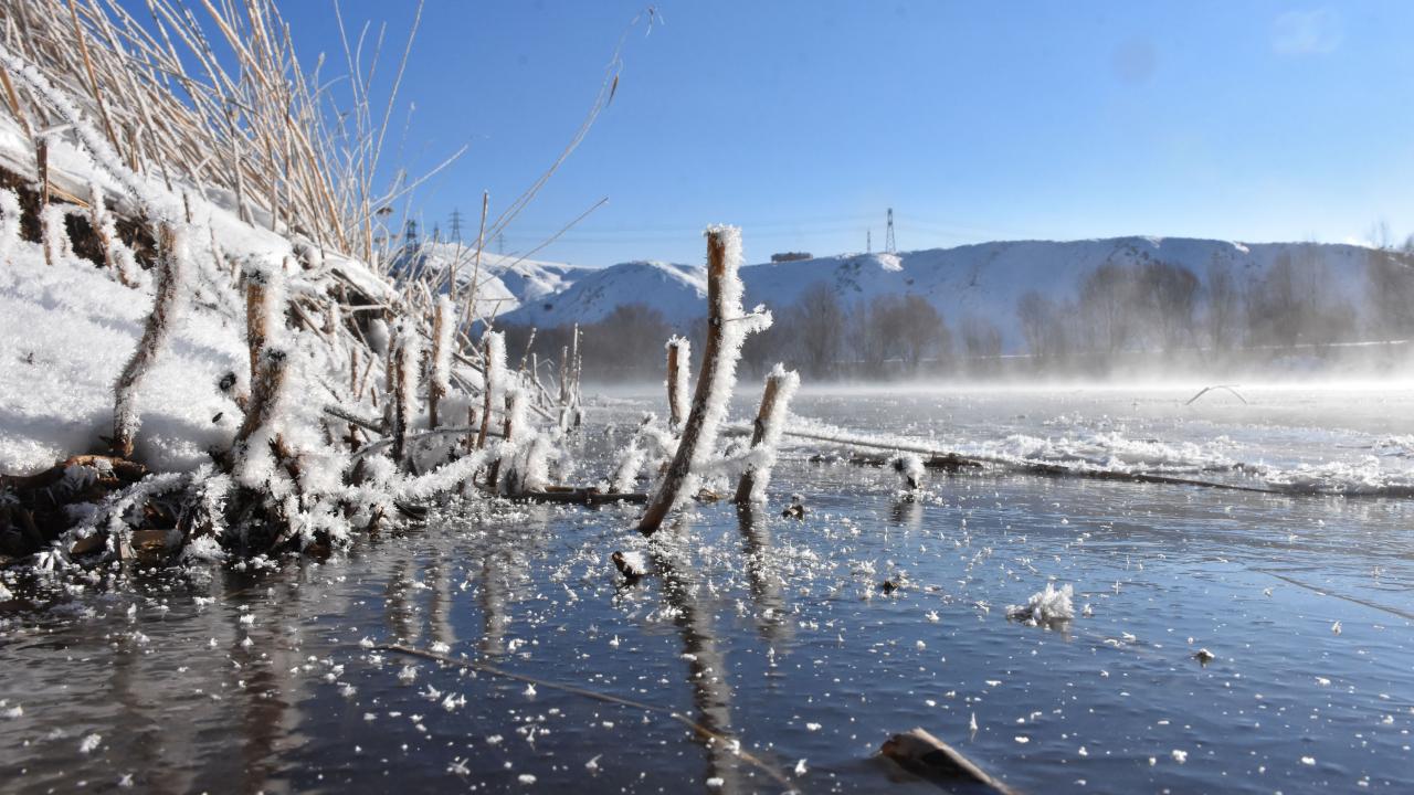 Nehir çevresindeki bitki örtüsü üzerinde biriken kırağı ise güzel görüntüler oluşturdu.
