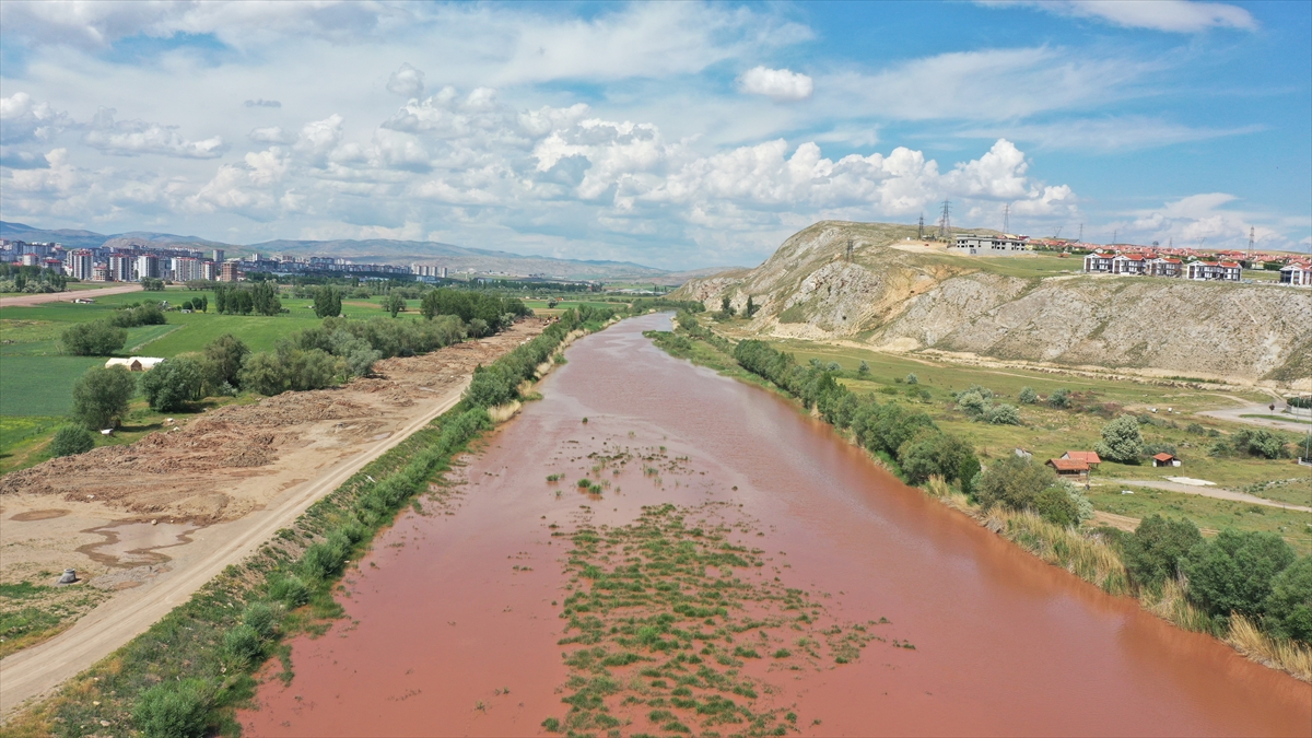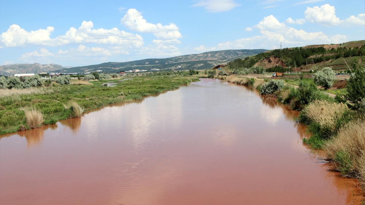 Sivas'ta son günlerde etkili olan sağanağın ardından Kızılırmak nehrinin suyu kızıl akmaya başladı.