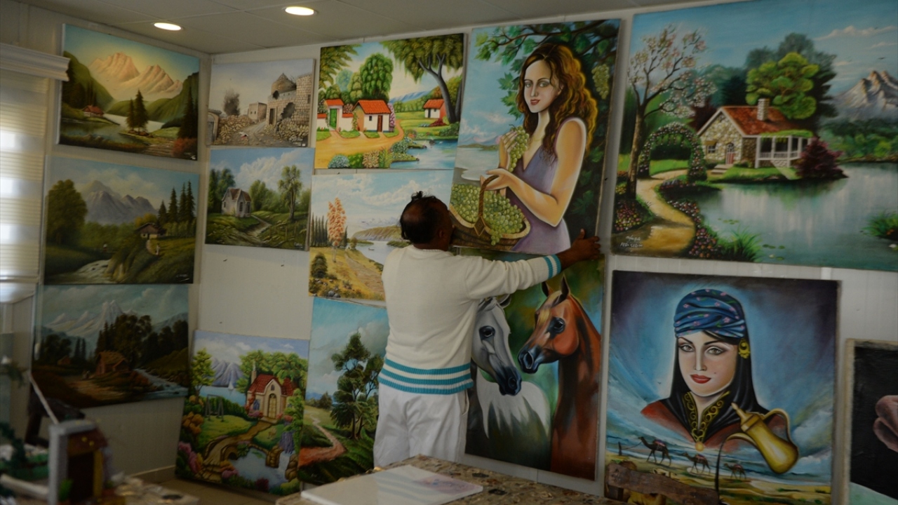 Suriyeli ressam Fedi Selim, yaptığı açıklamada, iç savaş nedeniyle yaklaşık 7 yıl önce Türkiye’ye sığındıklarını ve ardından Elbeyli Geçici Barınma Merkezi’ne yerleştiklerini belirtti.