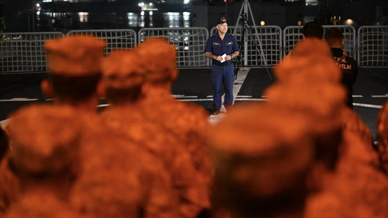 Lübnan Tahliye Görevi Grup Komutanı Tümamiral Nihat Baran, seyir öncesinde gemi personeline konuşma yaparak başarılı görev temennisinde bulundu.
