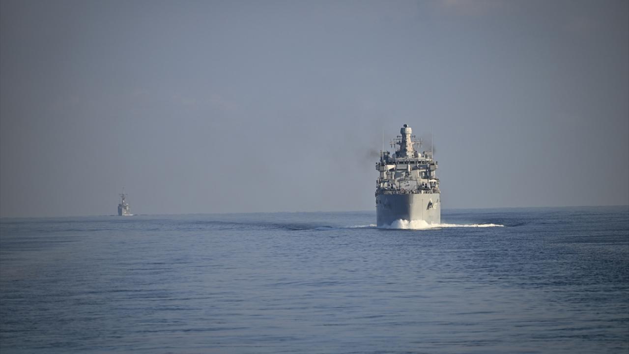 Limandan demir alan TCG Sancaktar ve TCG Bayraktar, 2 fırkateyn ve 2 karakol gemisi eşliğinde Beyrut Limanı`na ulaştı.