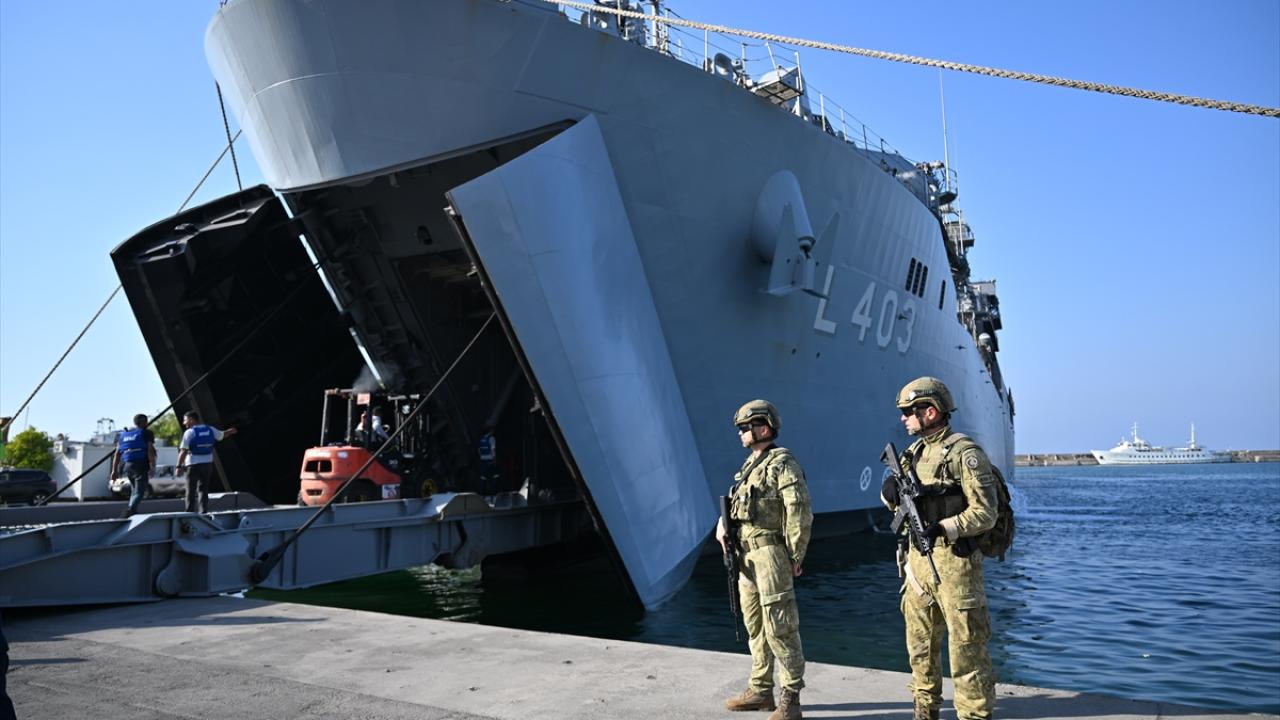 Yerli amfibi gemilerindeki insani yardım malzemeleri, işlemlerin ardından yanaşacağı Beyrut Limanı`na indirilecek.
