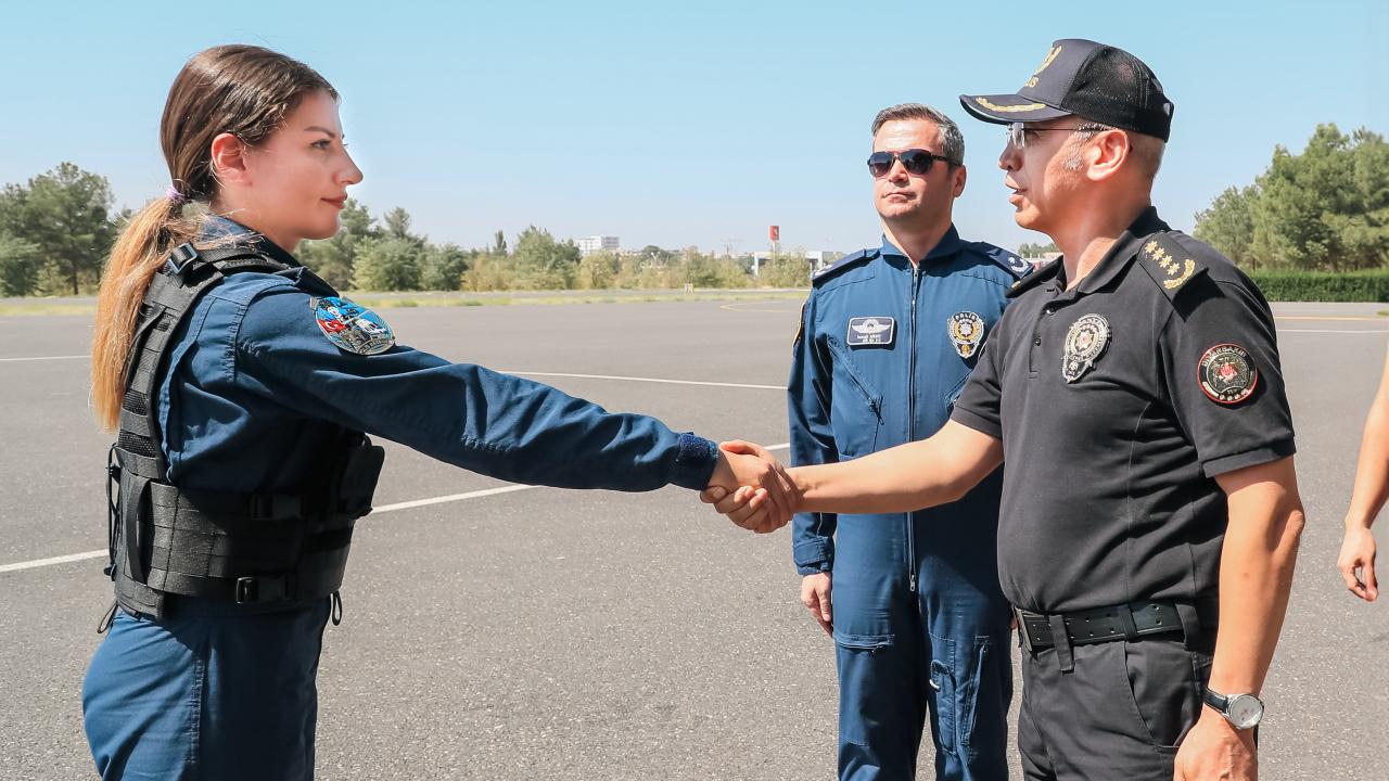 Uçuşun ardından İl Emniyet Müdürü Kaya, Karabulut`u tebrik edip, `Harikaydın, seninle gurur duyduk. Güzel manevralar yaptın. Allah, kazasız belasız, başarılı bir meslek hayatı versin inşallah` dedi.