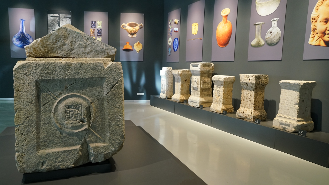 Müzede çok sayıda değişik tipolojide mezarı ve oluşturulan salonlarda lahit, mezartaşı, osthotek ve yazıtlı steller başta olmak üzere mezarlardan elde edilen yüzlerce buluntuyu görmek mümkün.